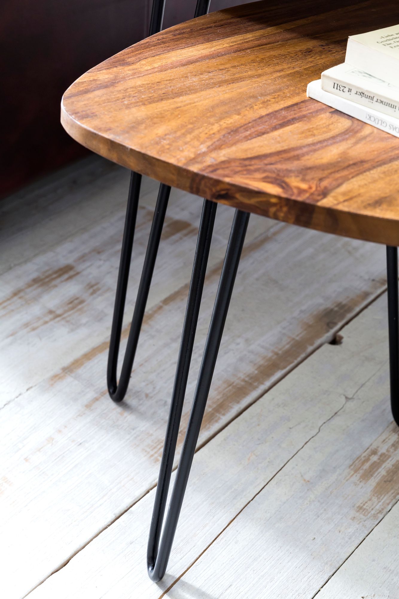 - Materiaal: massief Sheeshamhout, metalen poten