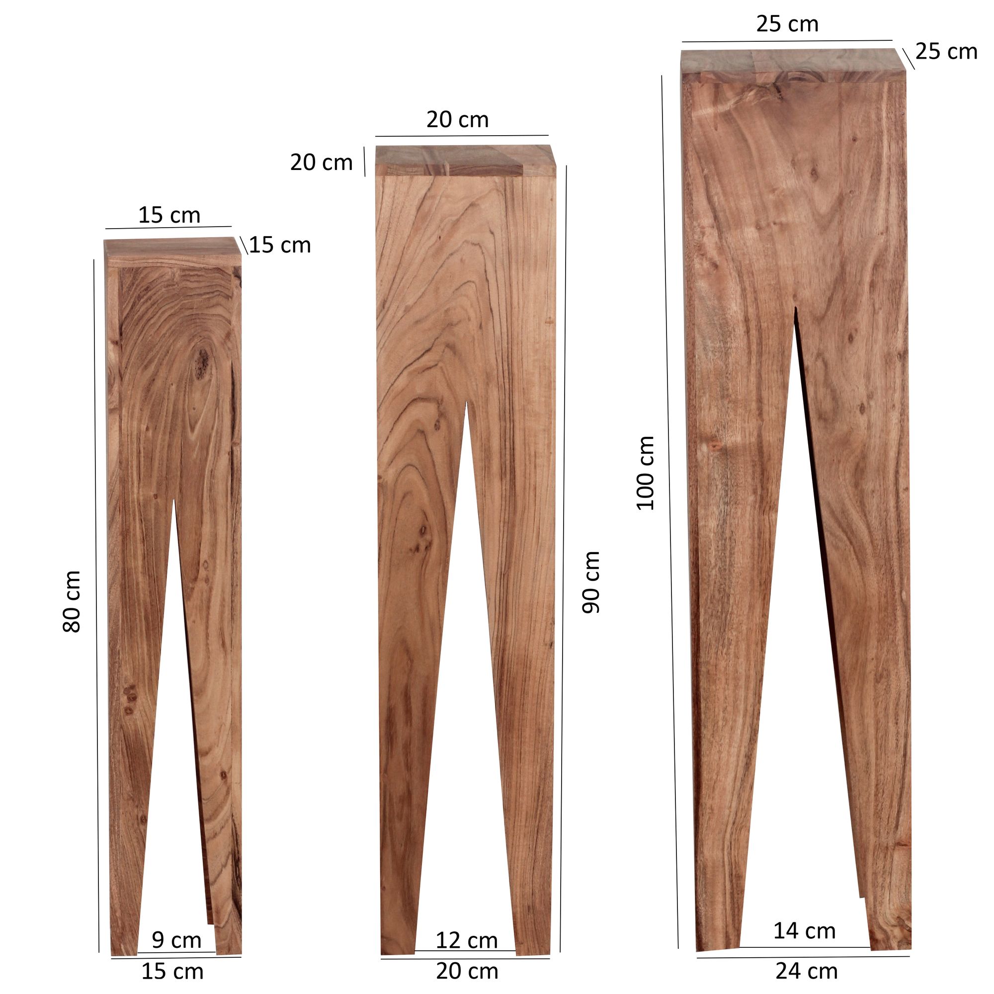 Productinformatie "Set van 3 Acaciahouten Bijzettafels Naturel | 15-25x80-100x15-25 cm | Modern vierkant ontwerp"
