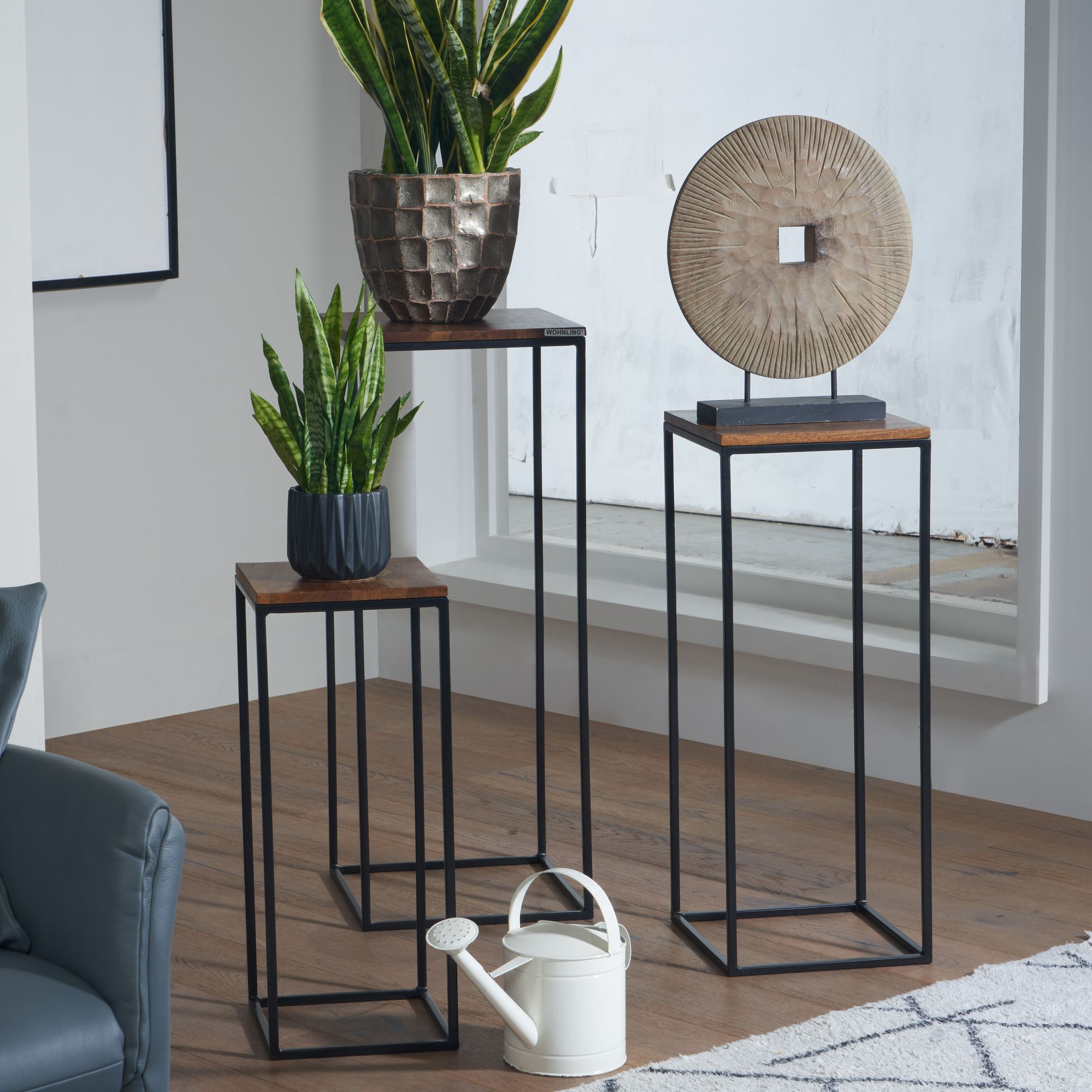 - Een set van 3 bijzettafels zonder decoratie