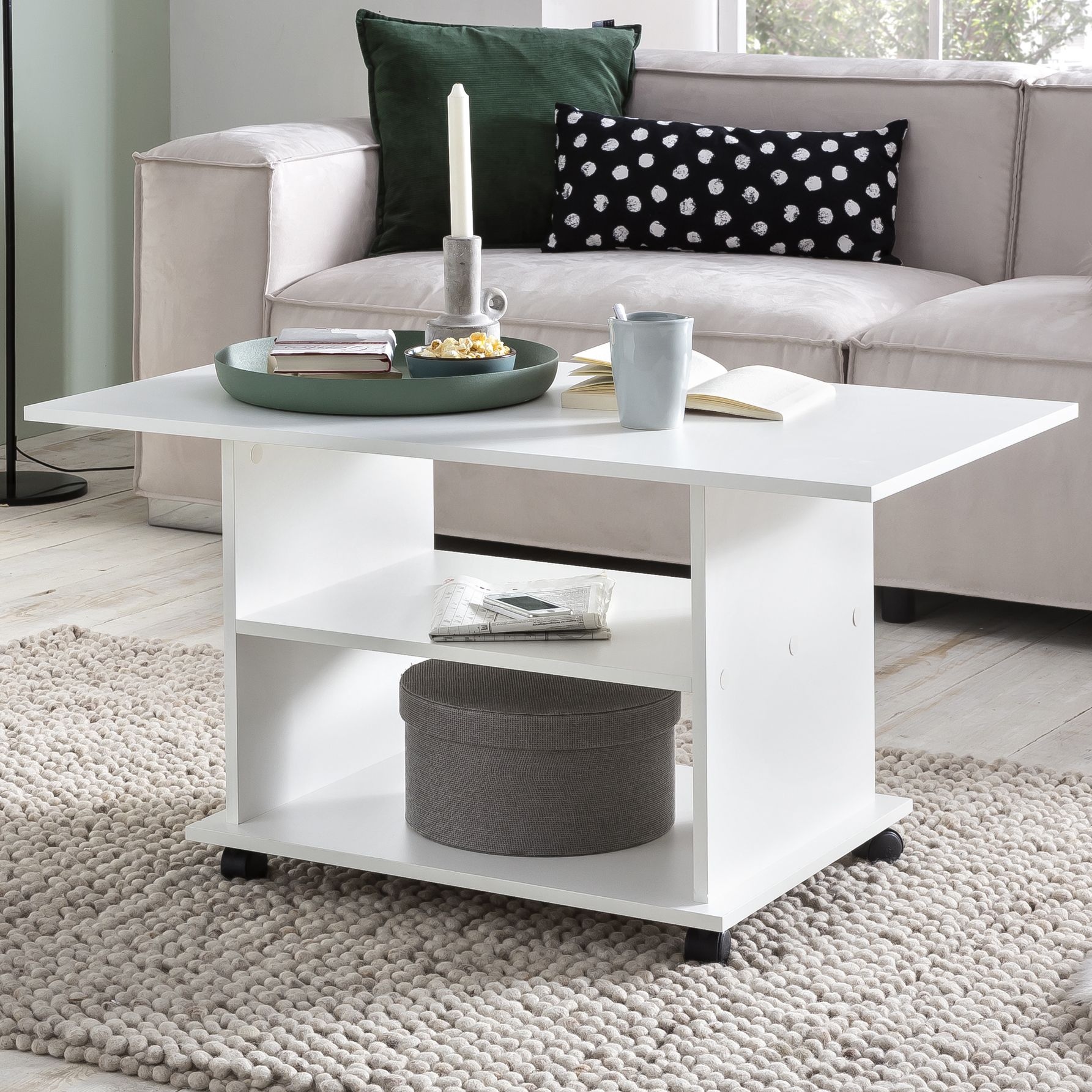 Witte Design Salontafel met Wieltjes en Draaibaar | Kleur Wit | 95x51x54,5 cm
