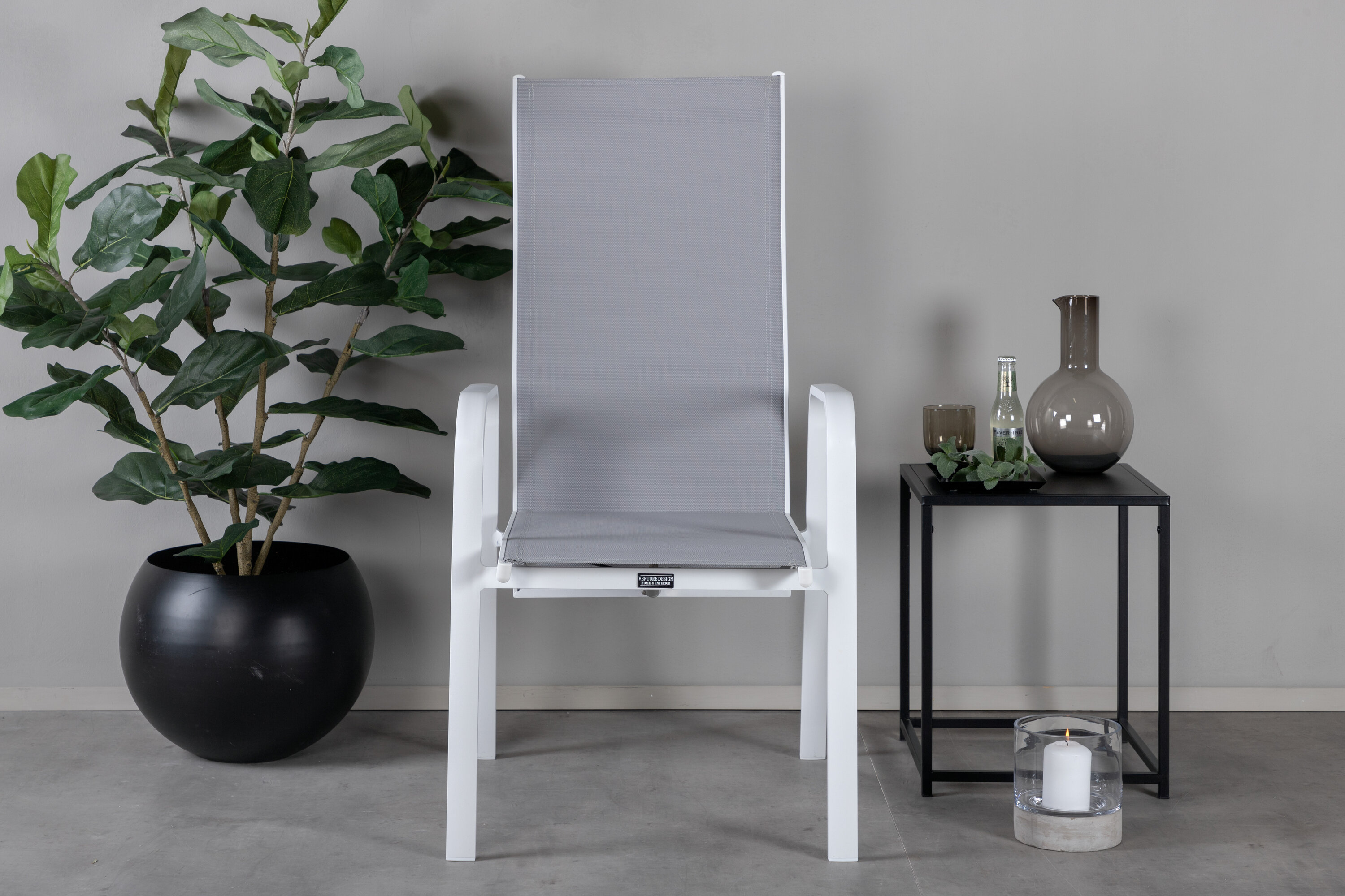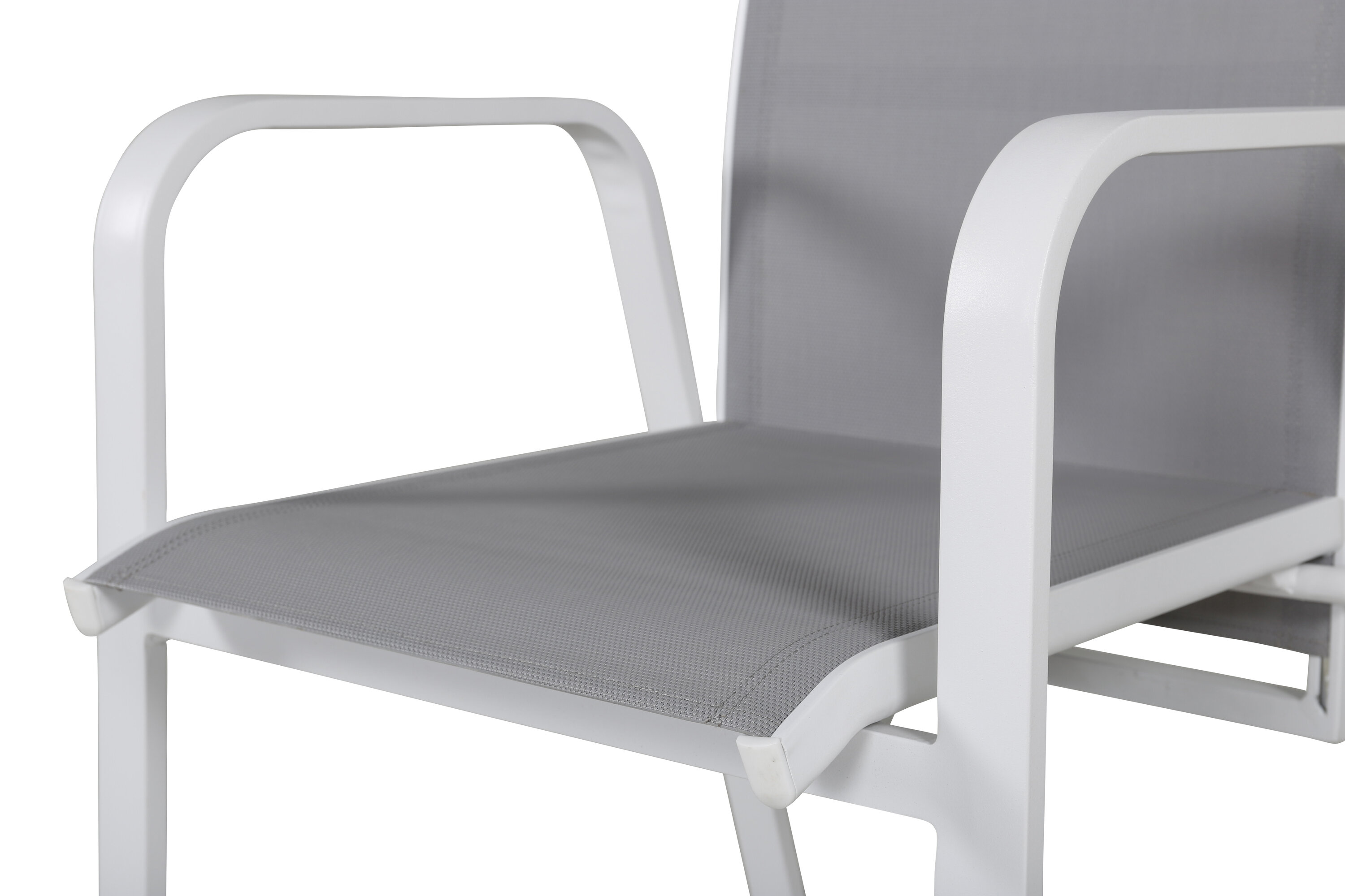 Wit -grijze stapelbare fauteuil uit de Copacabana serie die het goed doet aan de eettafel op het balkon. De rugleuning van de stoel kan worden ingeklemd, waardoor deze zeer comfortabel en praktisch is. Geniet op de beste manier van de zomer! De stoel is stapelbaar.