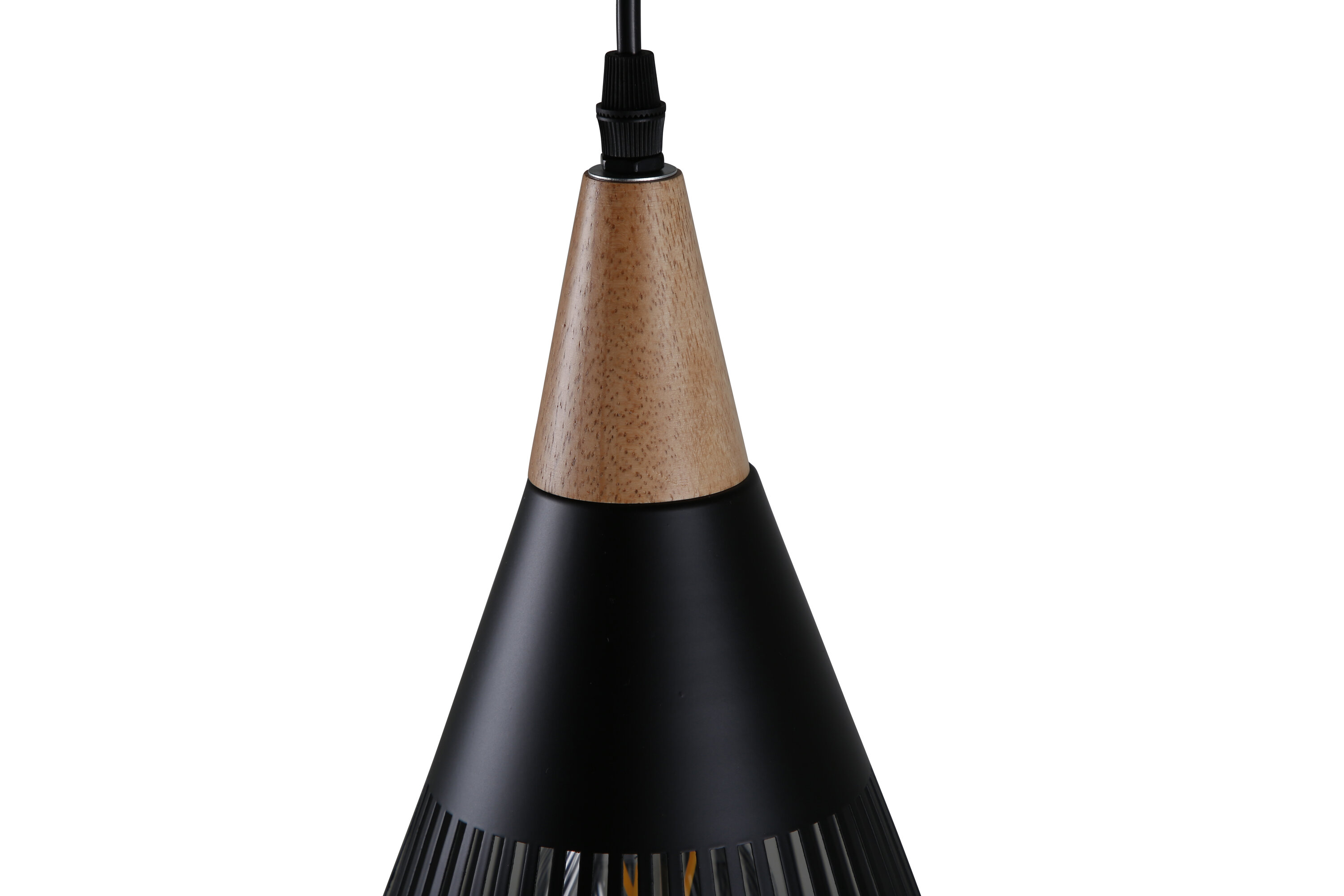 De daklamp Gruid heeft een stijlvol en modern design dat gemakkelijk te combineren is met andere decoraties. De decoratieve lampenkap in zwart, gecombineerd met de walnootkleurige bovenkant zorgt voor een prachtig totaalontwerp. Plaats de lamp boven de eettafel of salontafel en geniet van een aangenaam licht. Het nette formaat biedt de mogelijkheid om meerdere lampen op verschillende hoogtes te combineren voor een luxere indruk!