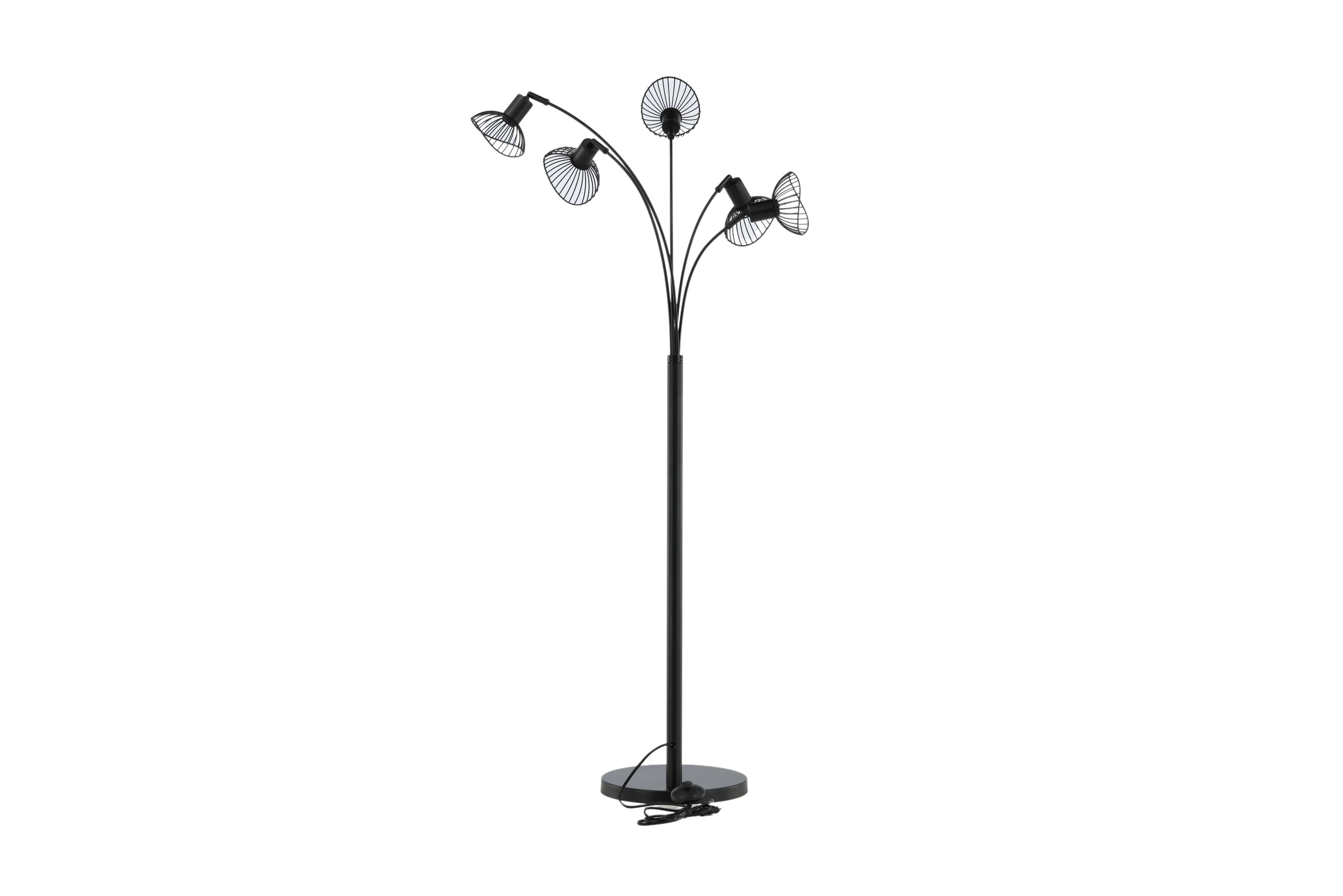 Deze vloerlamp uit de Elsa-serie heeft een modern en goed doordacht ontwerp dat de trendlijsten beklimt! Het eenvoudige ontwerp van de lampvoet en de licht gebogen armen in combinatie met het trendy ontwerp van de vijf lichtbronnen zorgen ervoor dat deze lamp met de meeste mee naar huis gaat. De vijf lichtbronnen van de lamp kunnen worden aangepast als puntverlichting gewenst is, wat de lamp zowel stijlvol als praktisch maakt. Plaats in de leeshoek, woonkamer of in de hal!