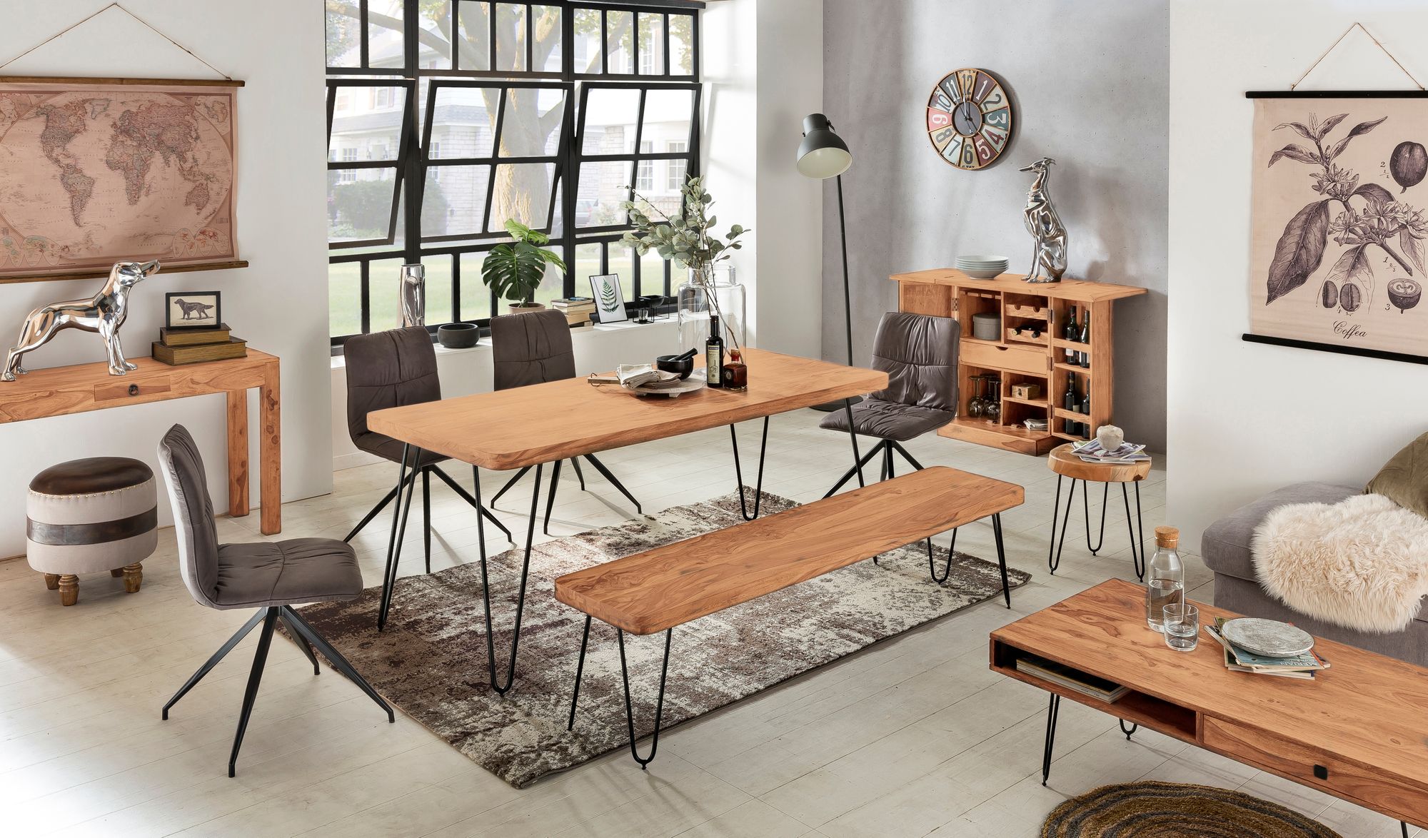 Geniet van de BAGLI eetkamerbank van massief Acacia hout, die natuurlijke charme combineert met een rustieke stijl en uw keuken of eetkamer verfraait. De stevige zitting is gecombineerd met zwarte metalen poten voor stabiliteit en een moderne uitstraling.