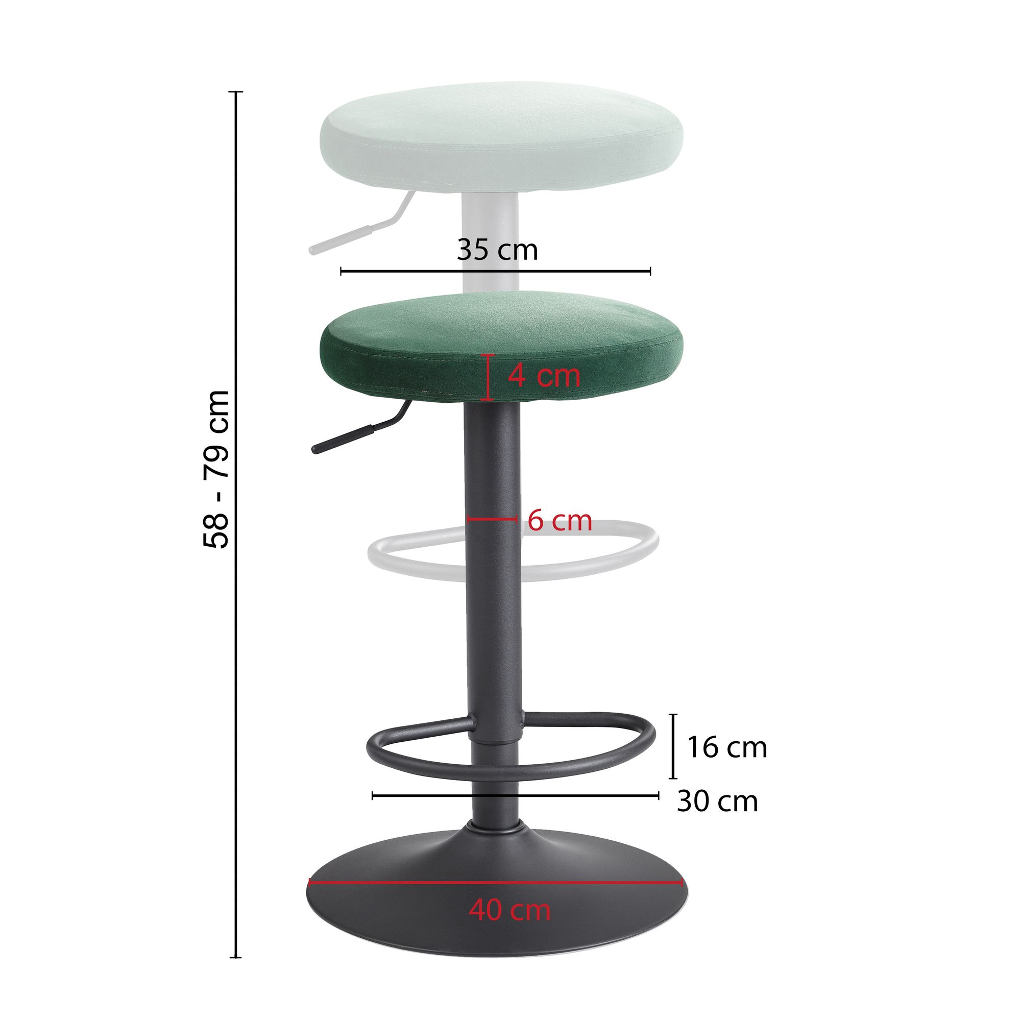 - Afmetingen: breedte 40 cm, diepte 40 cm, verstelbare hoogte 58 tot 79 cm