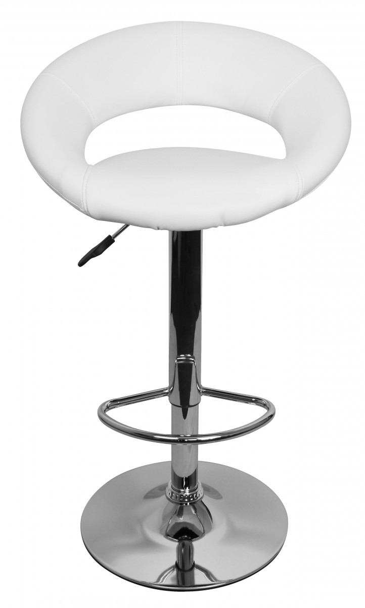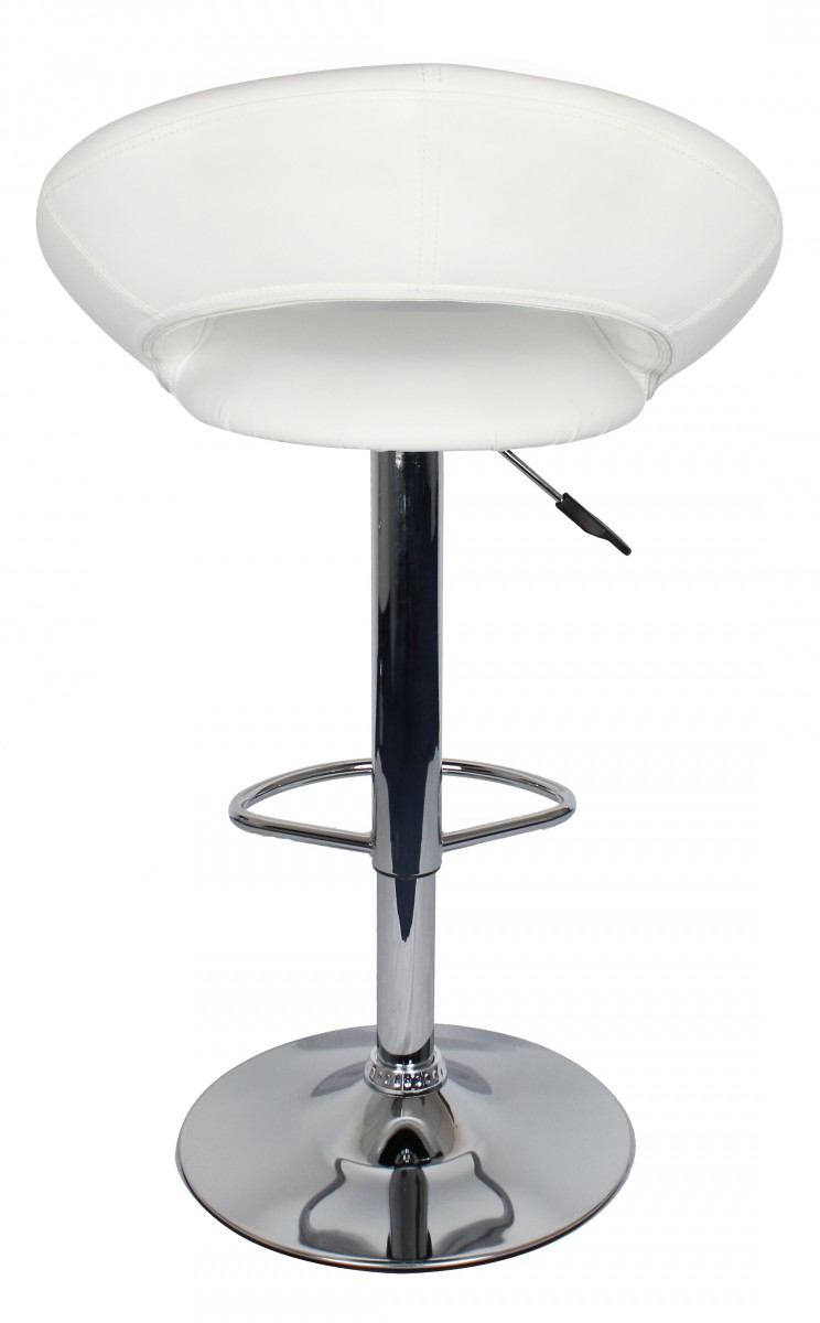 Productinformatie "Verstelbare Barkruk | Wit Kunstleer | Zonder Rugleuning, Chromen Frame 80-102 cm"