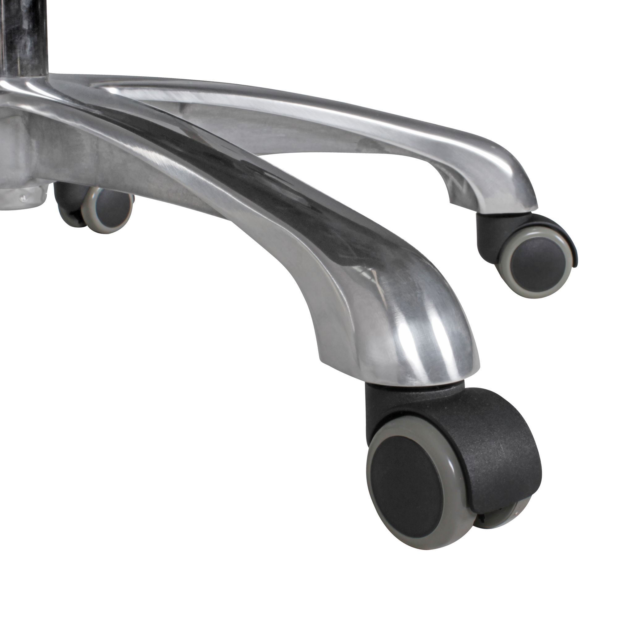 - Stabiele 70 cm gepolijste aluminium voet met hardevloerwieltjes