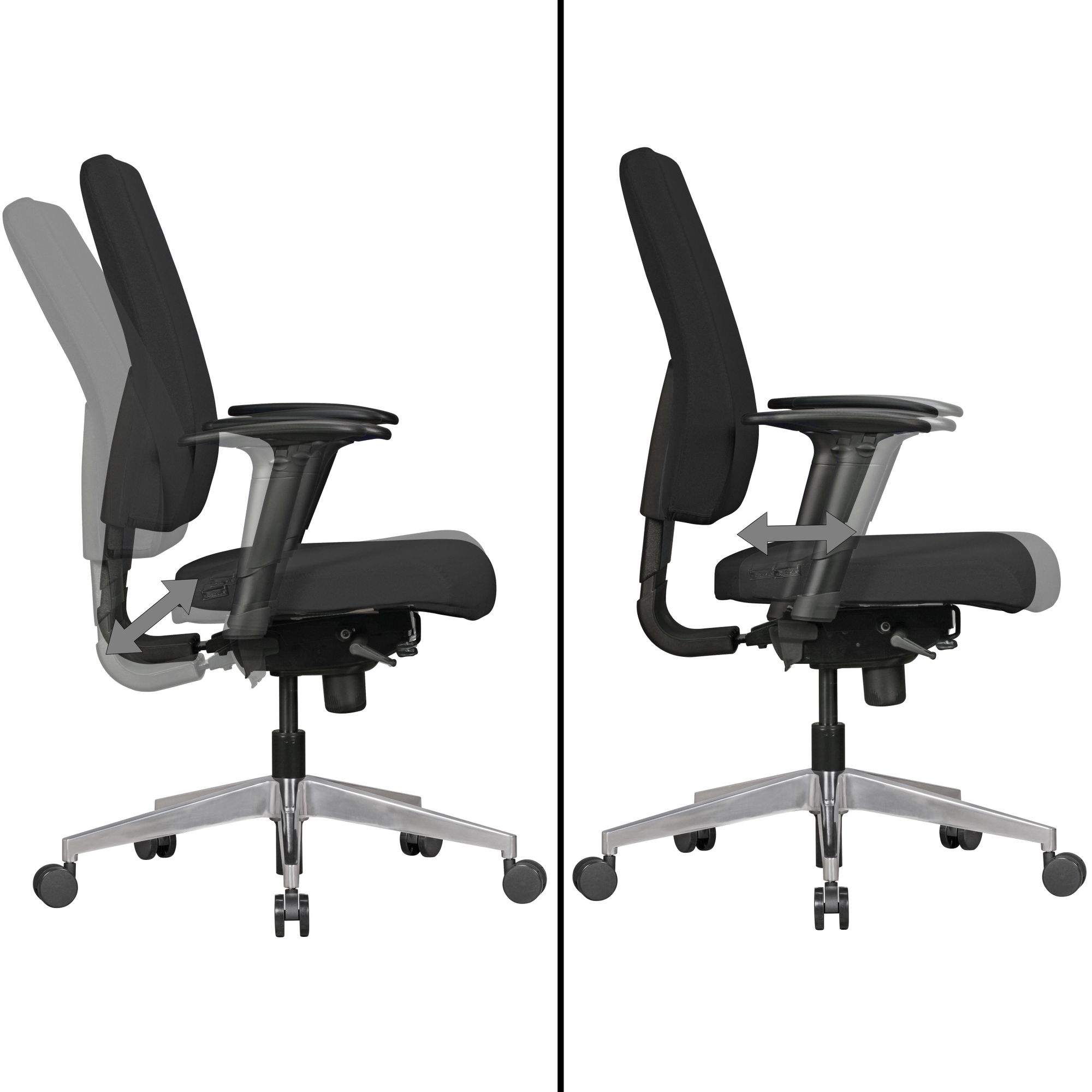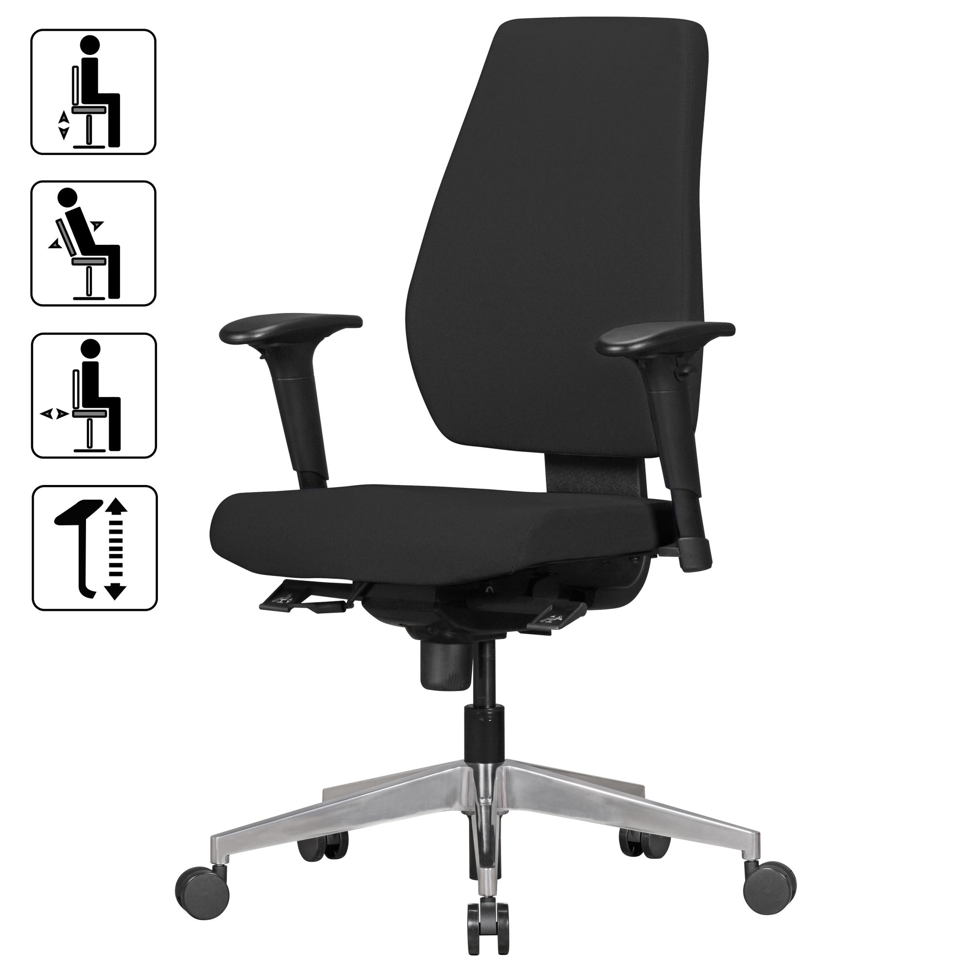 Verstelbare armleuningen en een 3-punts synchroonmechaniek zorgen voor een gepersonaliseerde zithouding en optimale lendensteun. De zitdiepte is instelbaar met 5 cm voor aangepast zitcomfort.
