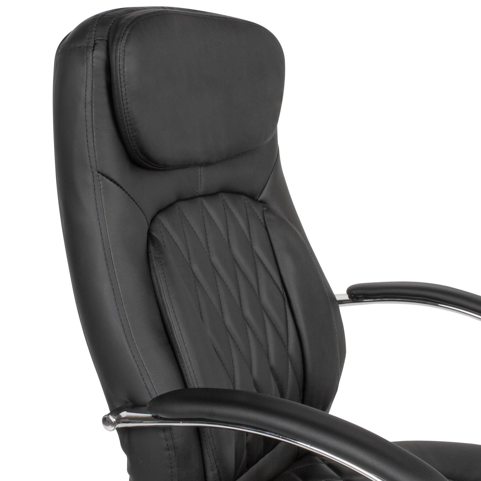 Deze zwarte bureaustoel met kunstleren bekleding combineert stijl en comfort voor professioneel gebruik. Het moderne ontwerp met een gewatteerd ruitenpatroon op de zitting en rugleuning biedt uitstekende zitervaring. Armleuningen en een stevige stalen voet zorgen voor stabiliteit en dragen tot 120 kg.
