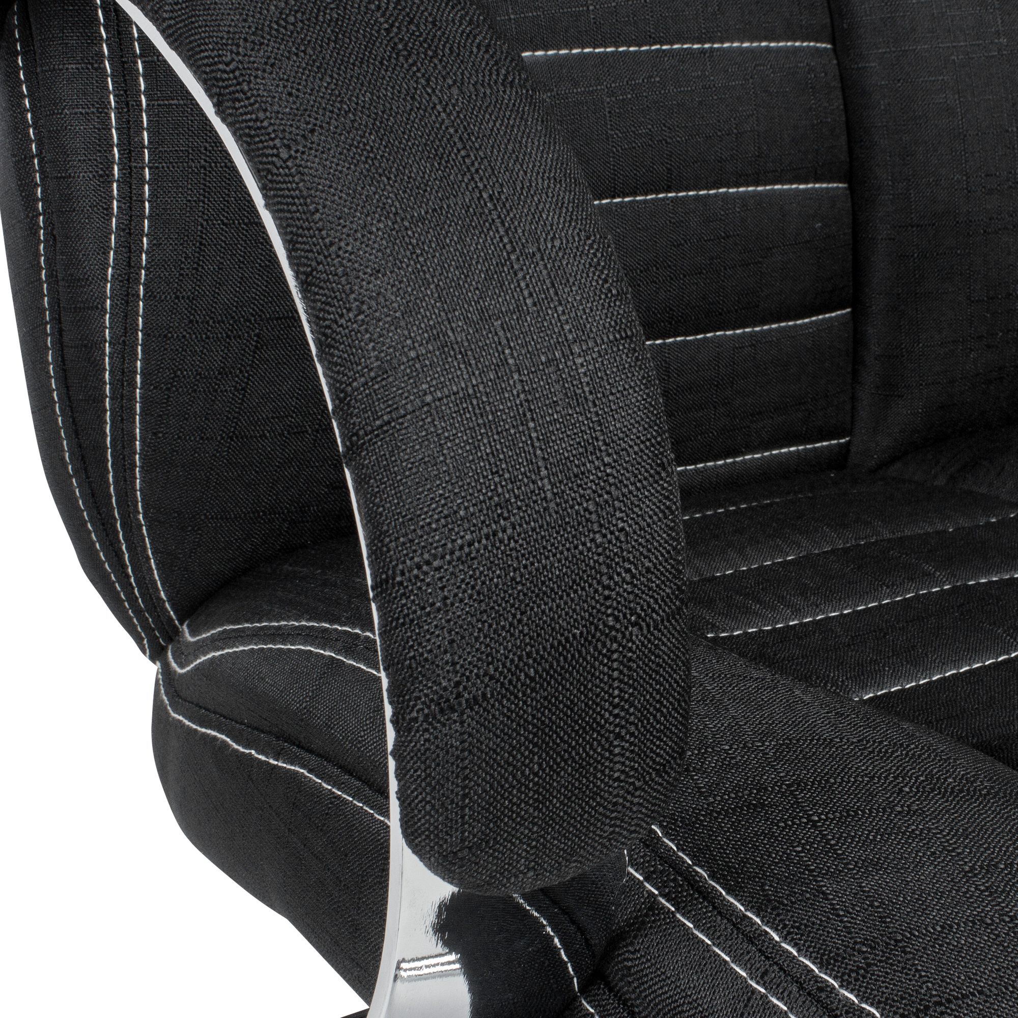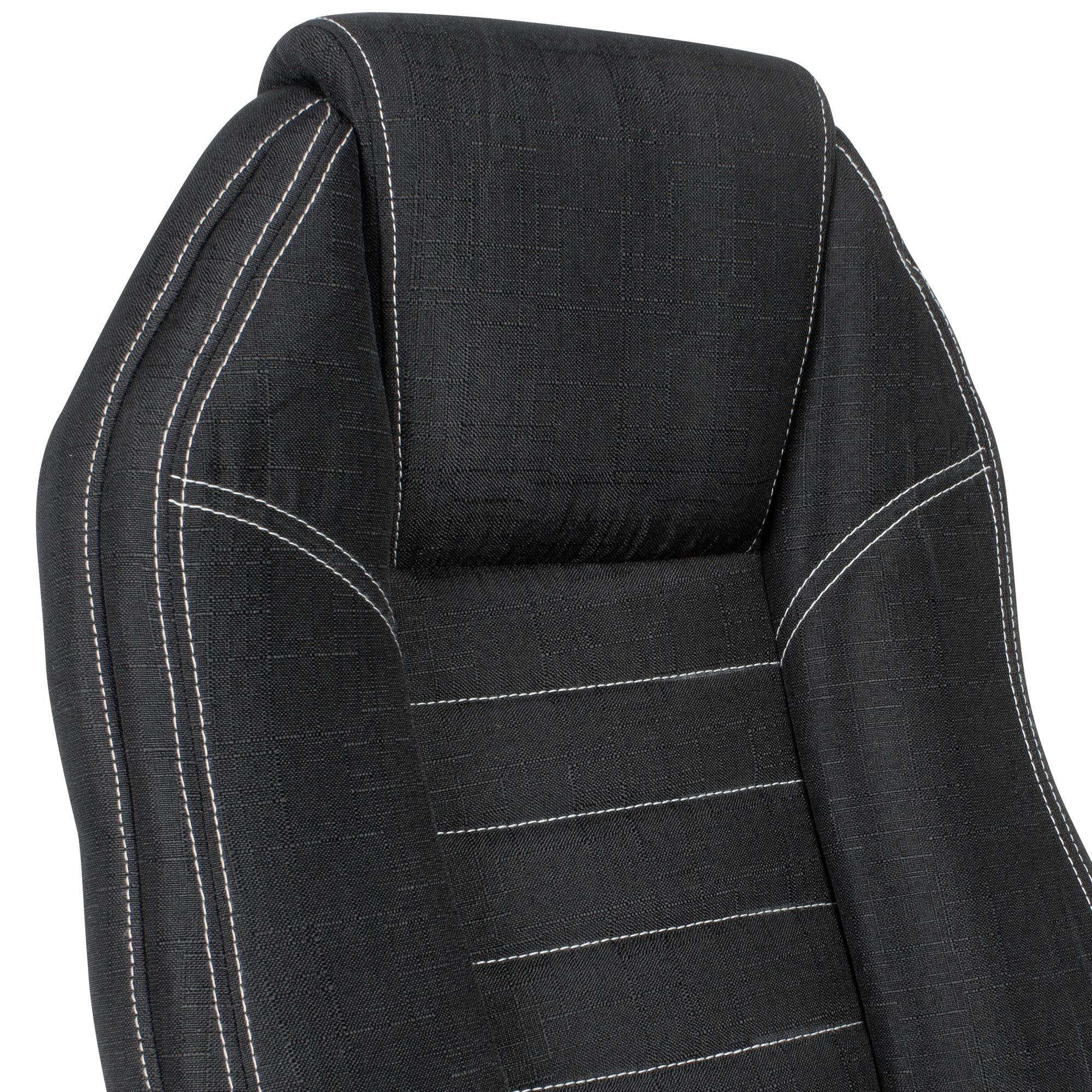 - Kleur: zwart met witte stiksels, zilverkleurige voet en armleuningen