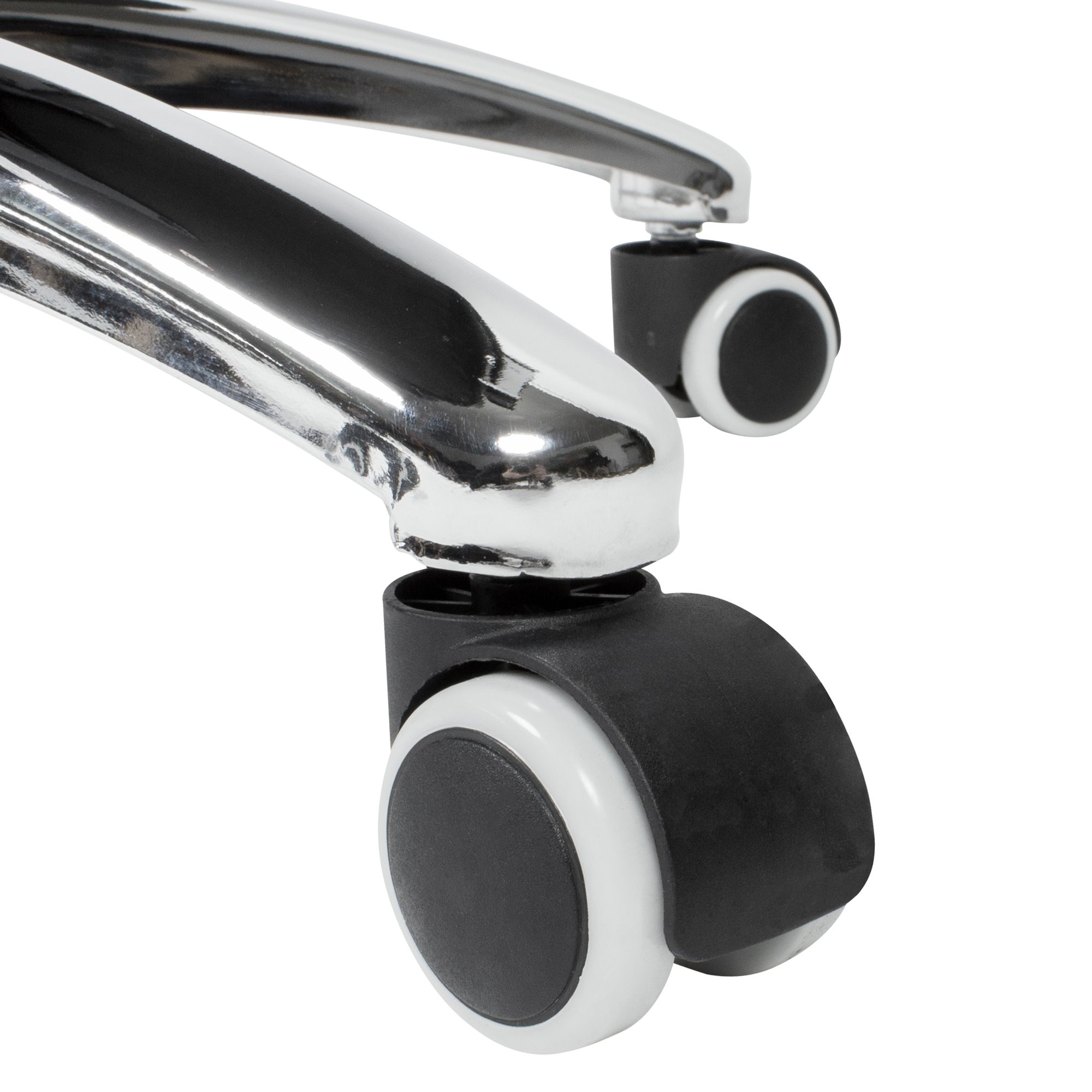 - Stabiele 65 cm brede voet met dubbele wielen voor harde vloeren
