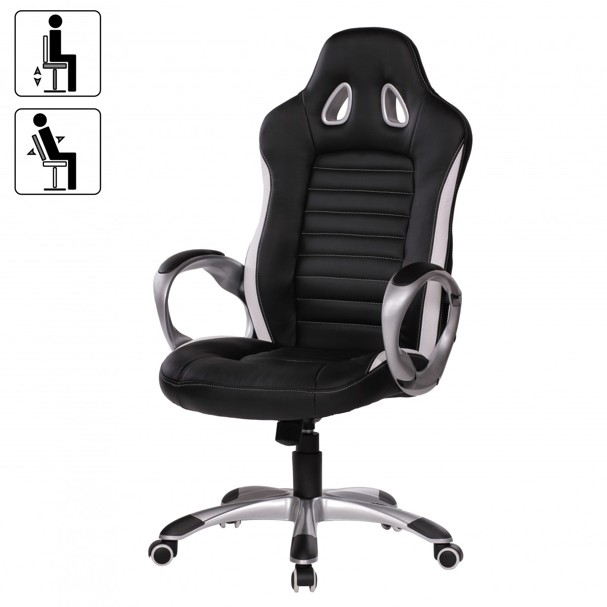 - Kleur: zwart met witte zijkanten, armleuningen aluminium met zwarte bekleding