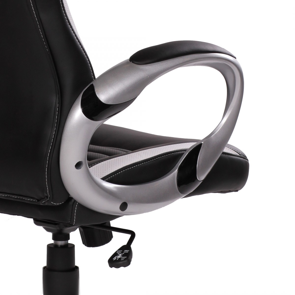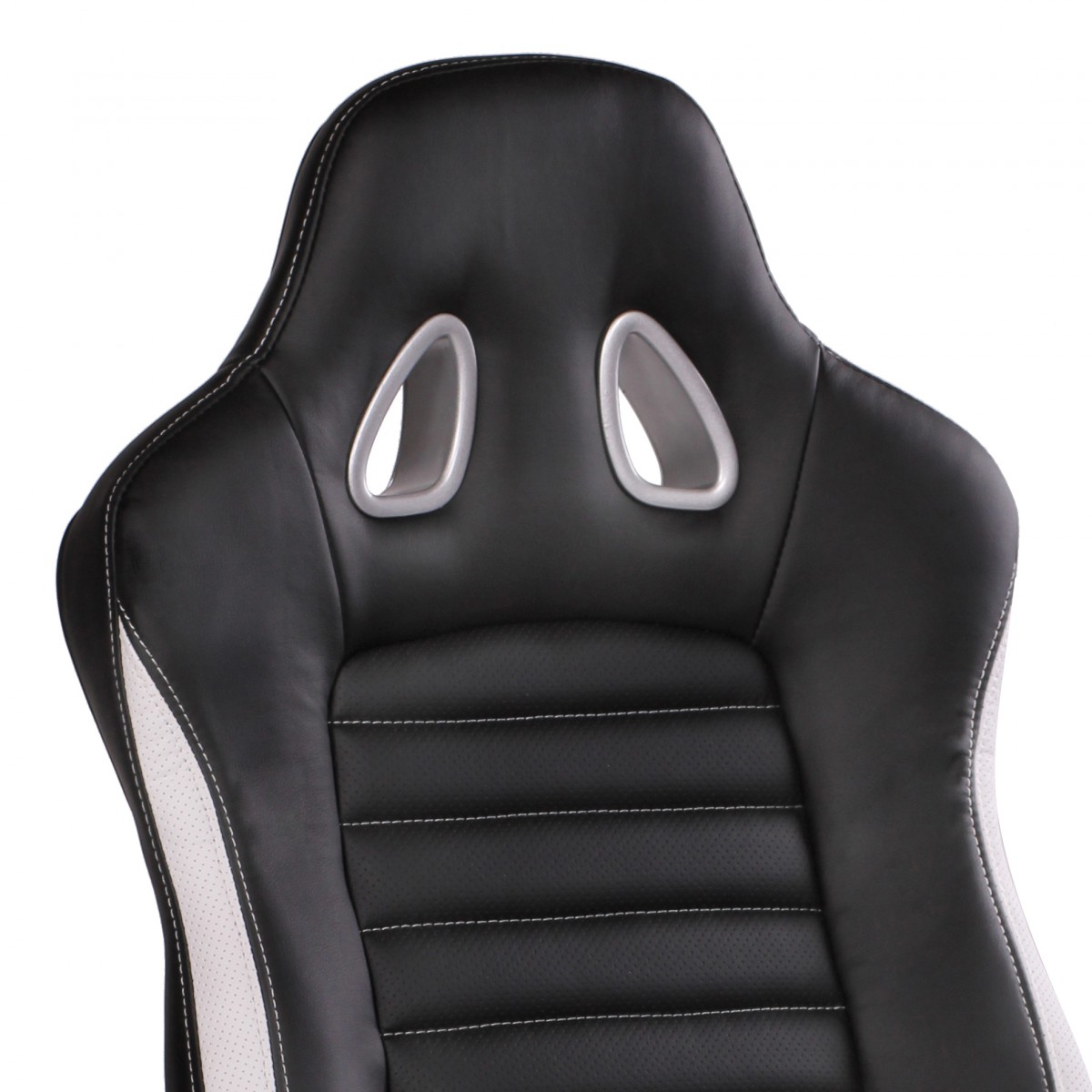 De SPA bureaustoel heeft een modern en comfortabel ontwerp met zwart kunstleer en witte accenten. Doorgestikte zitting en rugleuning zorgen voor uitstekende ventilatie, ideaal voor langdurig gebruik, vooral in de zomer.