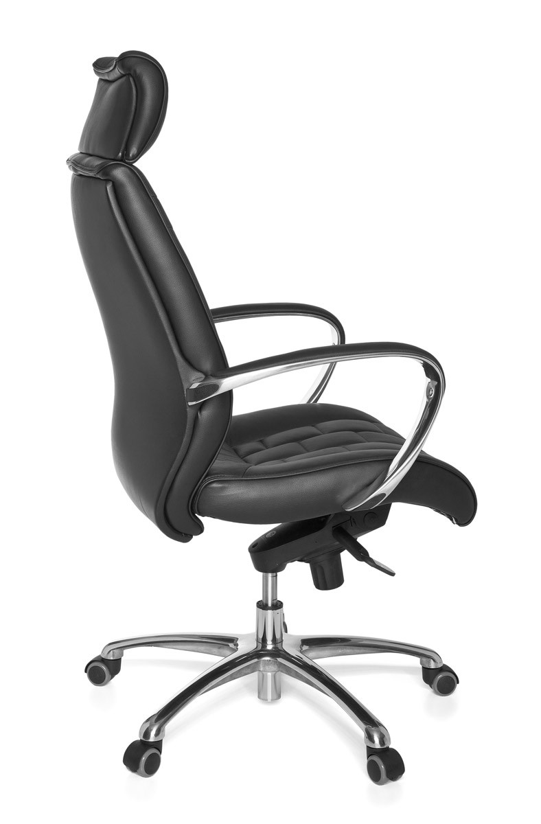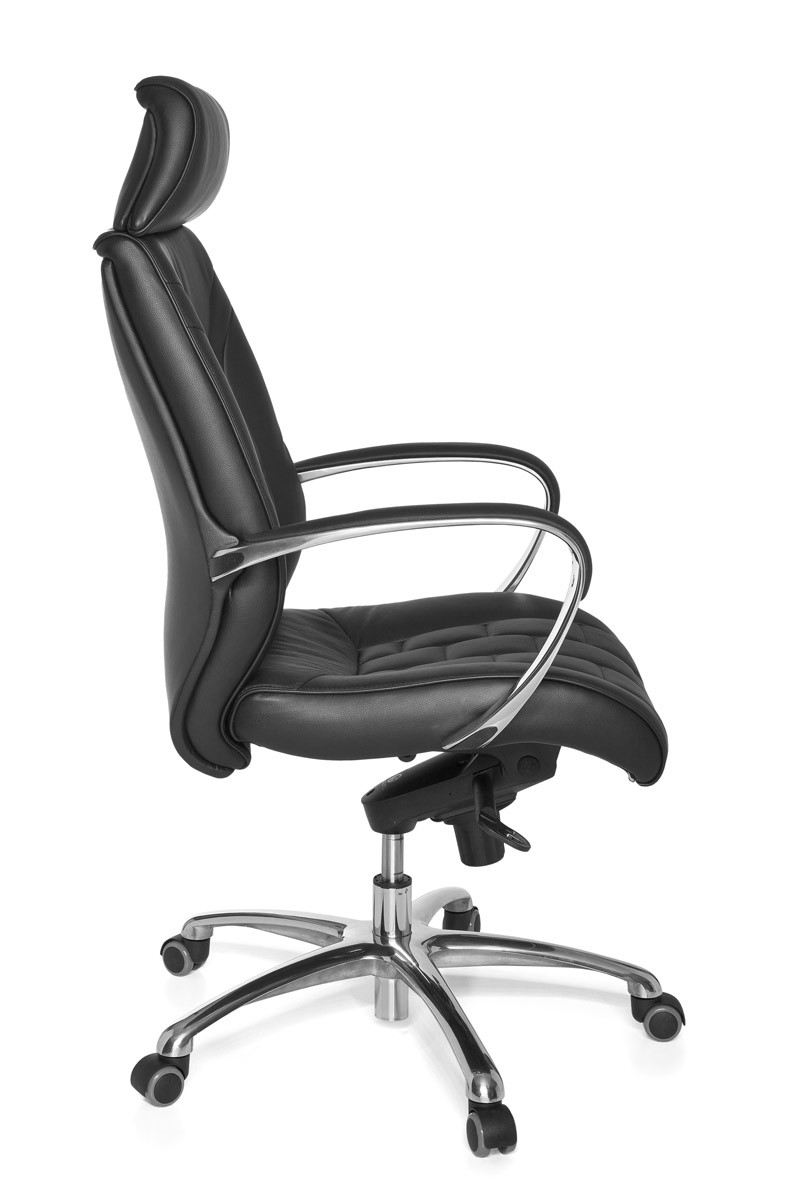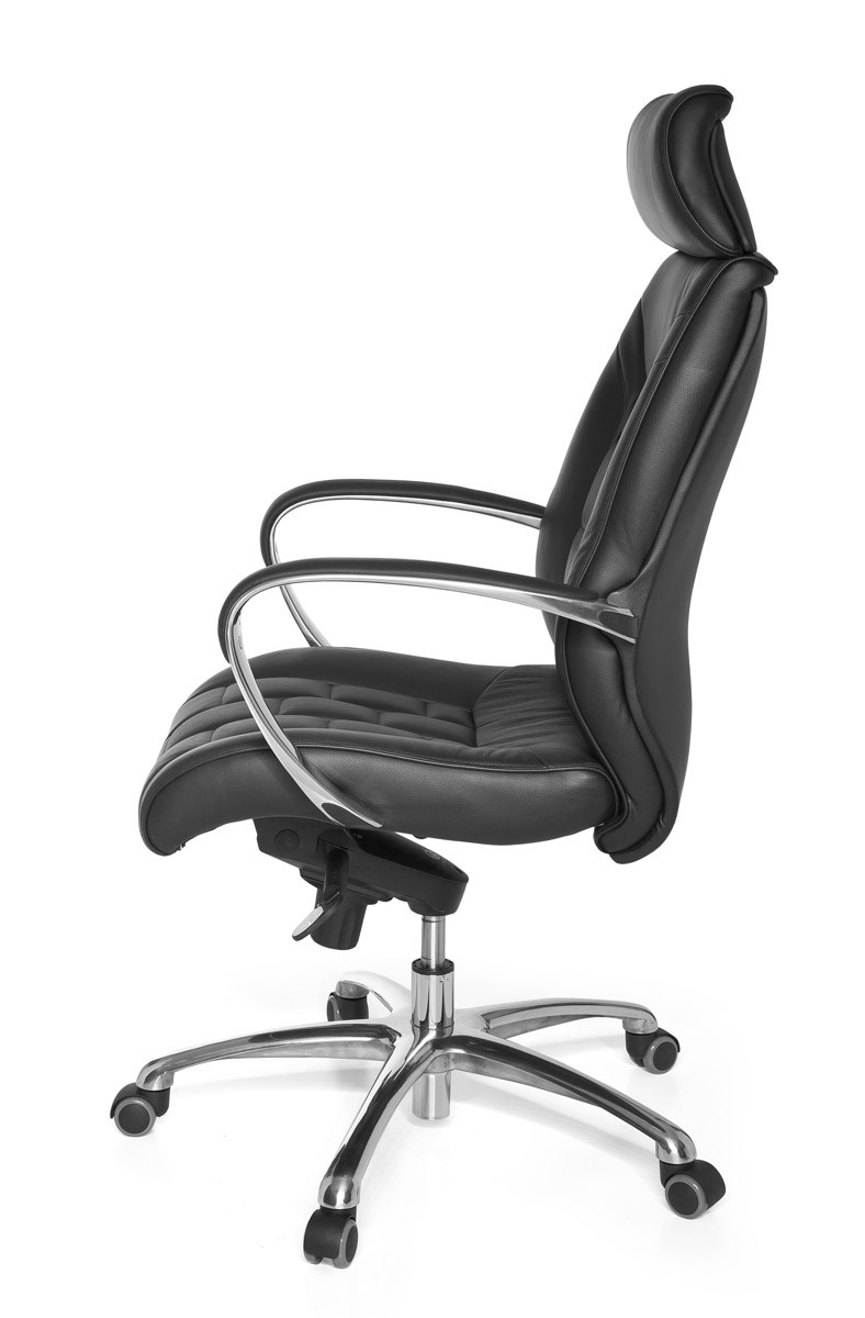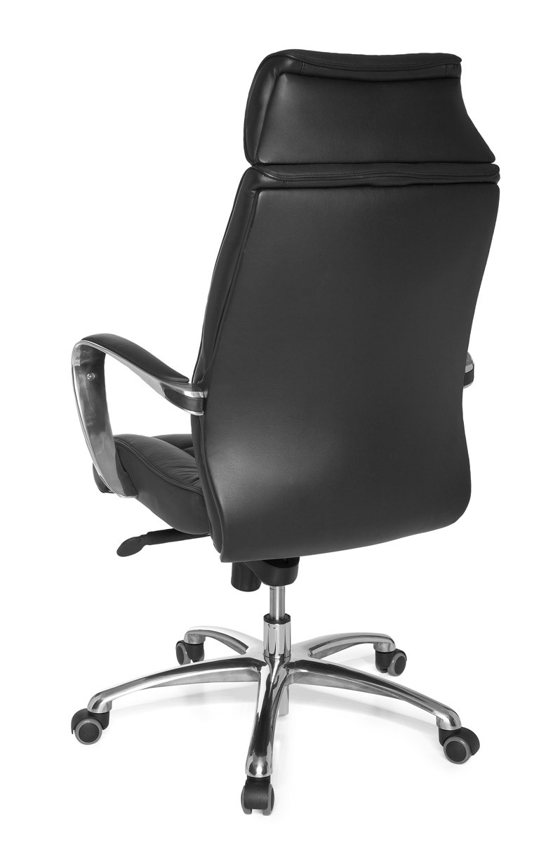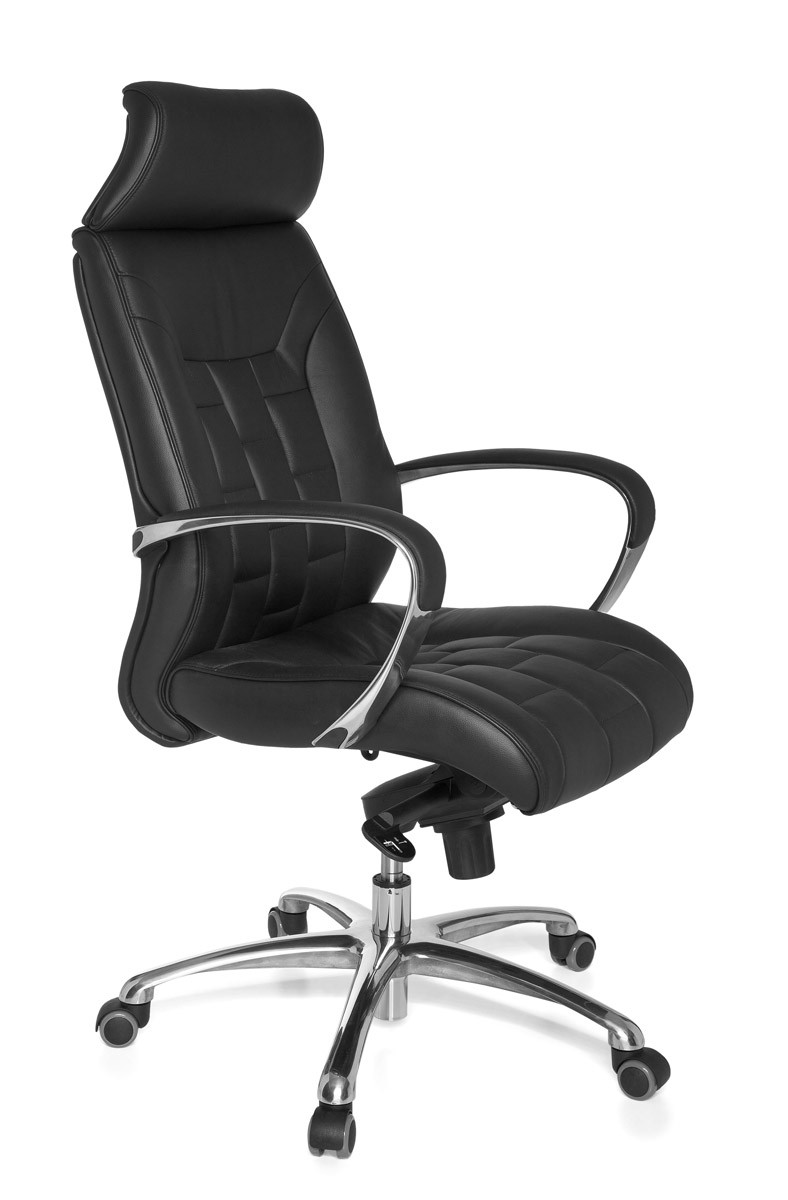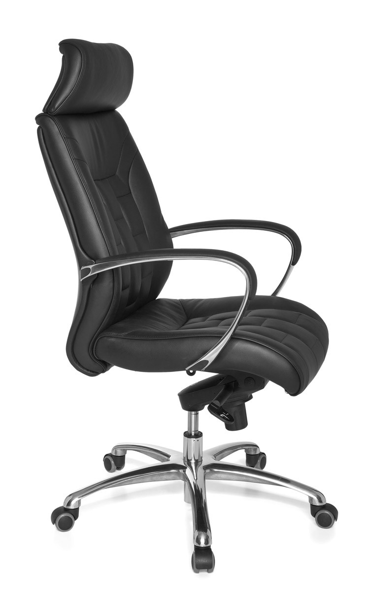 Deze XXL bureaustoel van zwart echt leer biedt comfort en duurzaamheid voor professioneel gebruik. De brede zitting en hoge rugleuning zorgen voor uitstekende ondersteuning, aangevuld met dikke, hoogwaardige vulling en geïntegreerde lendensteun.