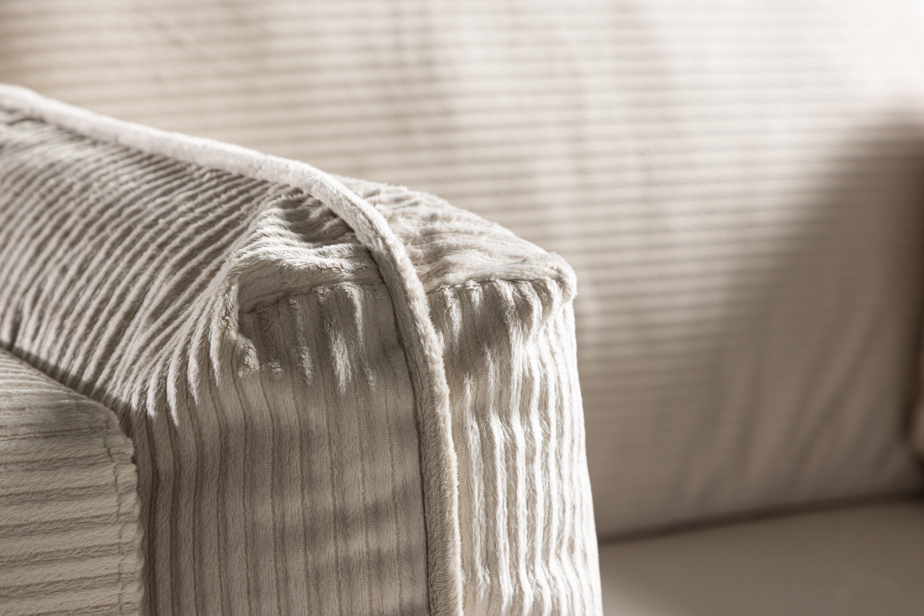 Het fluweel heeft de neiging om drukplekken te krijgen als de pool gaat liggen. Door de opdrukken kan de stof er versleten uitzien, wat hier heel normaal is voor dit soort materiaal. Afhankelijk van hoe het licht valt, kan de stof in de meeste verschillende tinten veranderen.