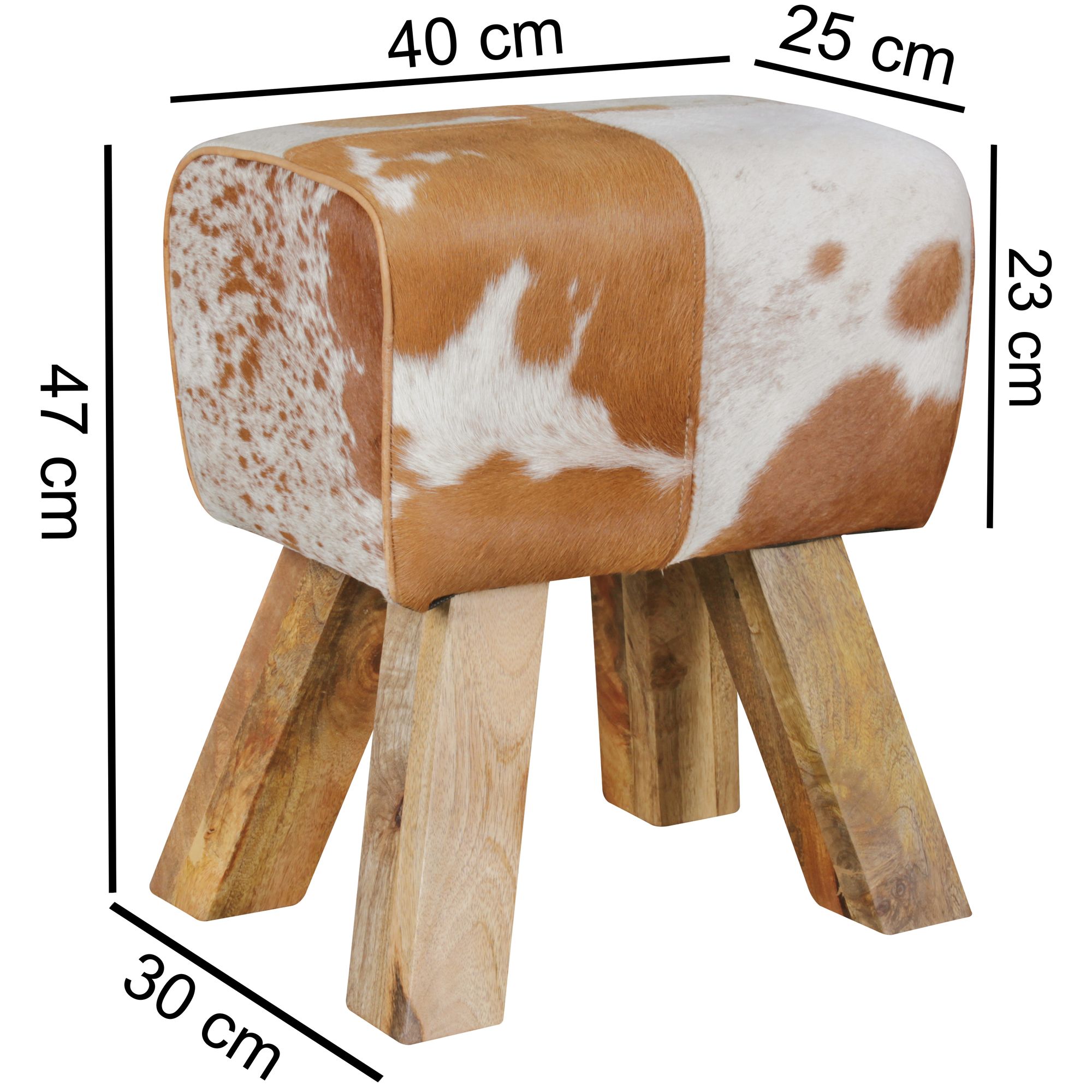 Productinformatie "Design Turnbock kruk met geitenharen bruin/wit | 30 x 40 x 47 cm | Massief mangohouten poten"