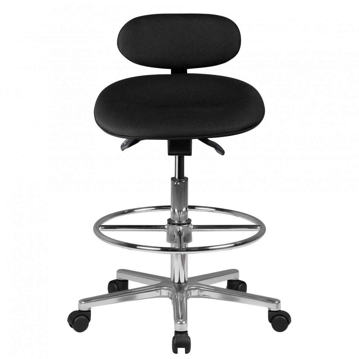 Deze draaibare en in hoogte verstelbare kruk biedt flexibiliteit en comfort, ideaal voor veeleisende werkplekken die mobiliteit en ergonomisch zitten vereisen.