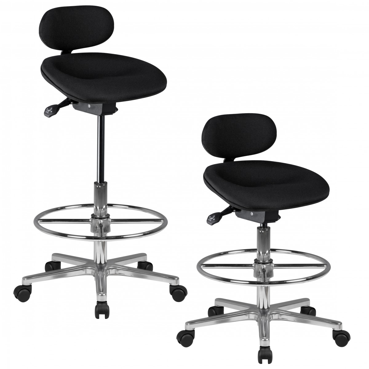 Werkkruk LOUISIANA | Zwarte stof | Hoogte 83 - 114 cm