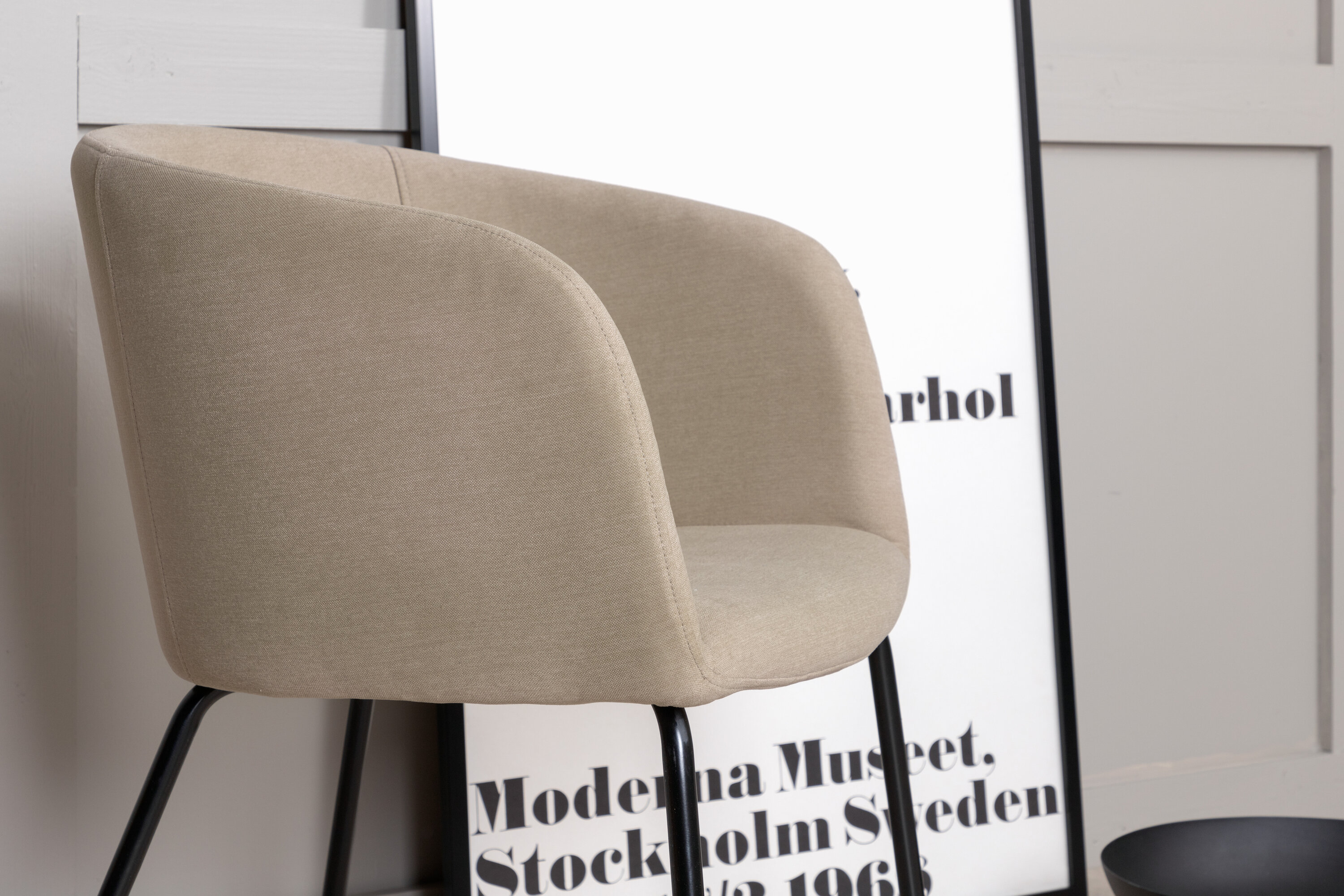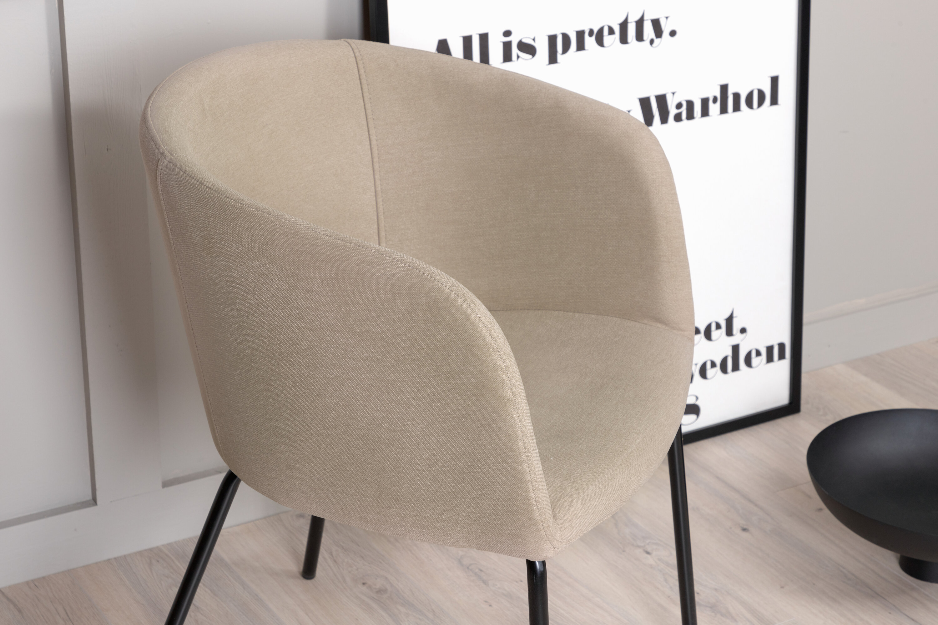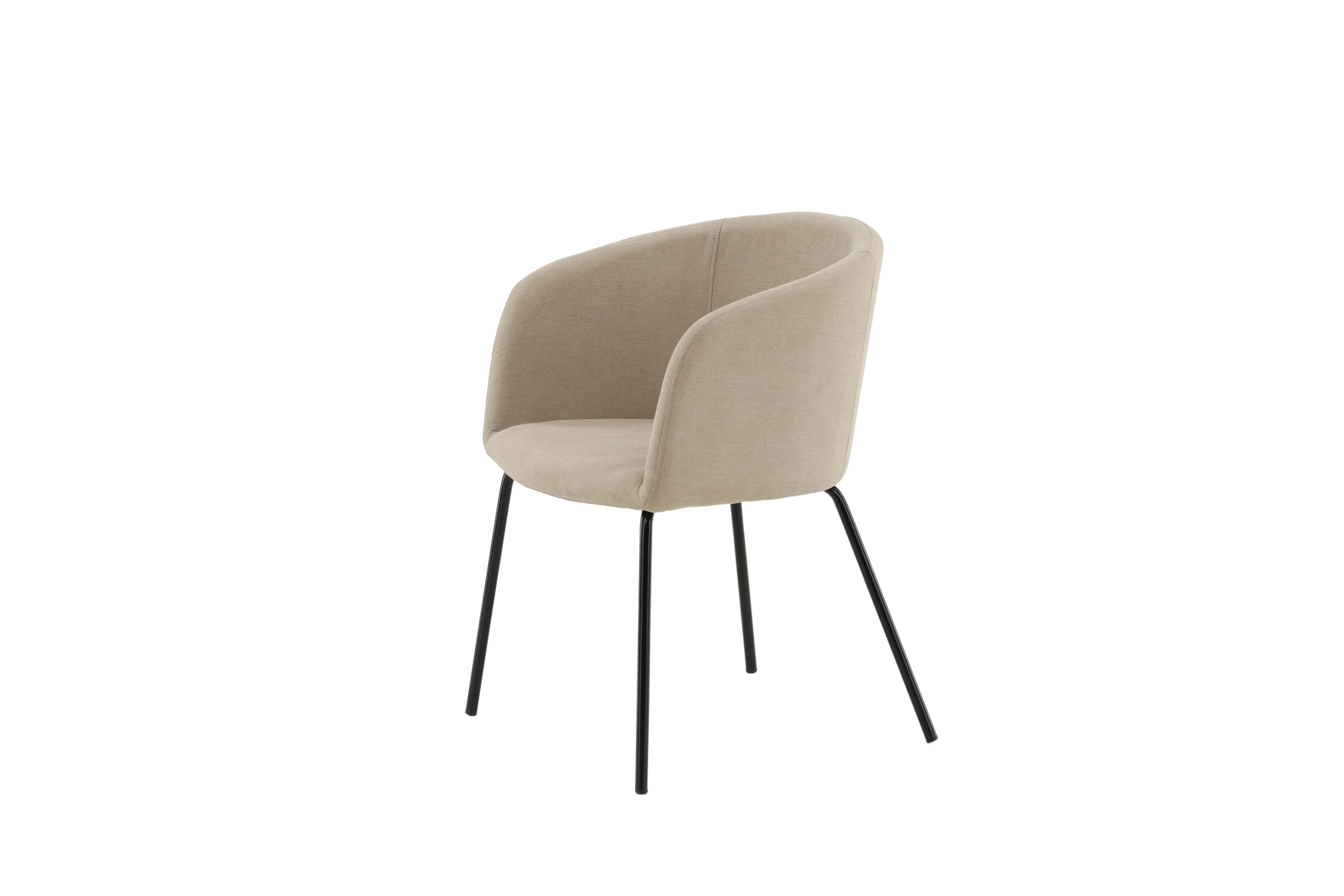 Een moderne stoel uit de Berit serie in stijlvolle beige kleur! Deze eetkamerstoel heeft een volledig gekleed ontwerp met een licht afgeronde rugleuning en zitting in polyester linnen en smalle poten in zwart ijzer - gegarandeerd even comfortabel als oogstrelend. Lichtere montage is vereist. Richt het hart van het huis uitnodigend en aangenaam in en geniet samen van heerlijke maaltijden!