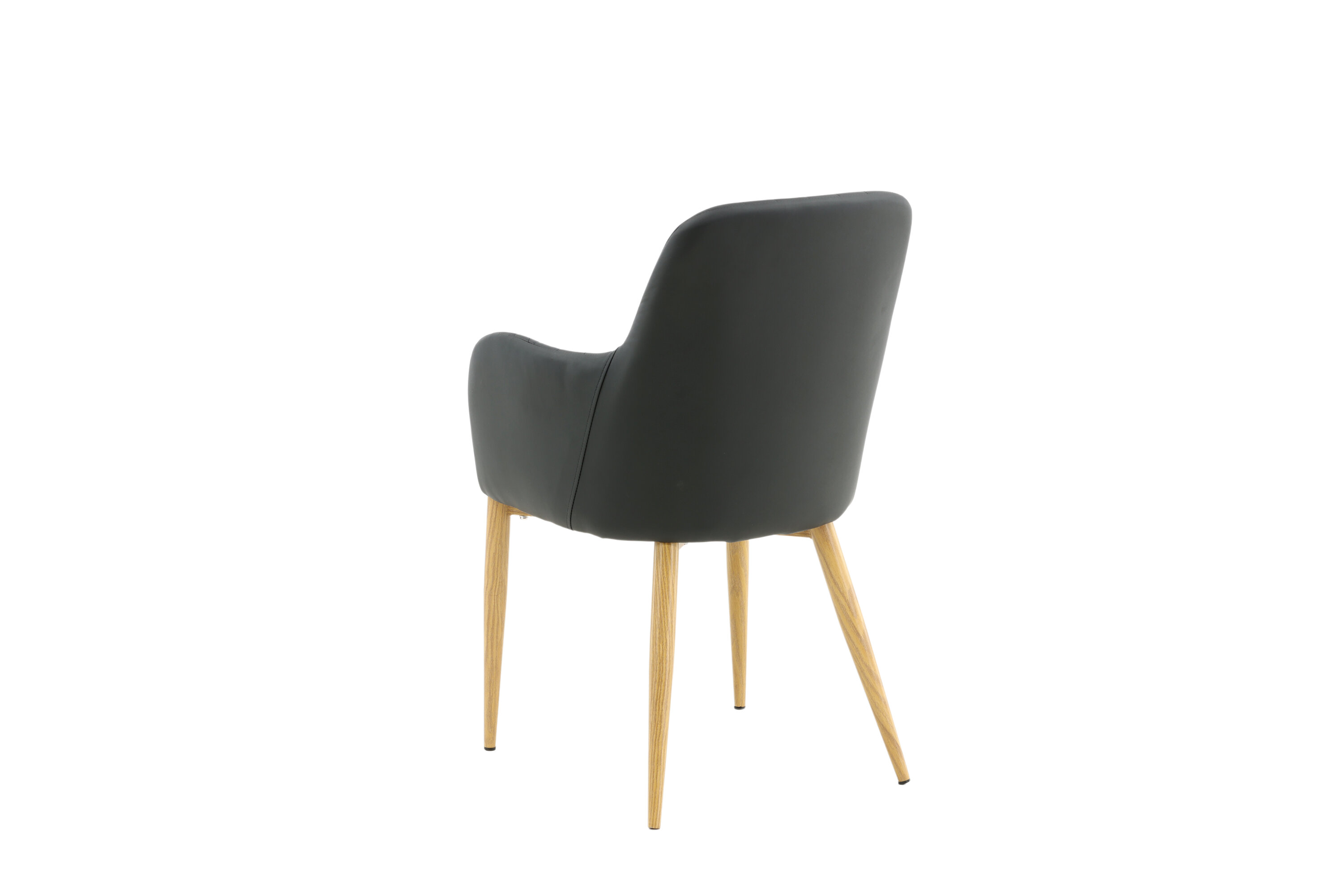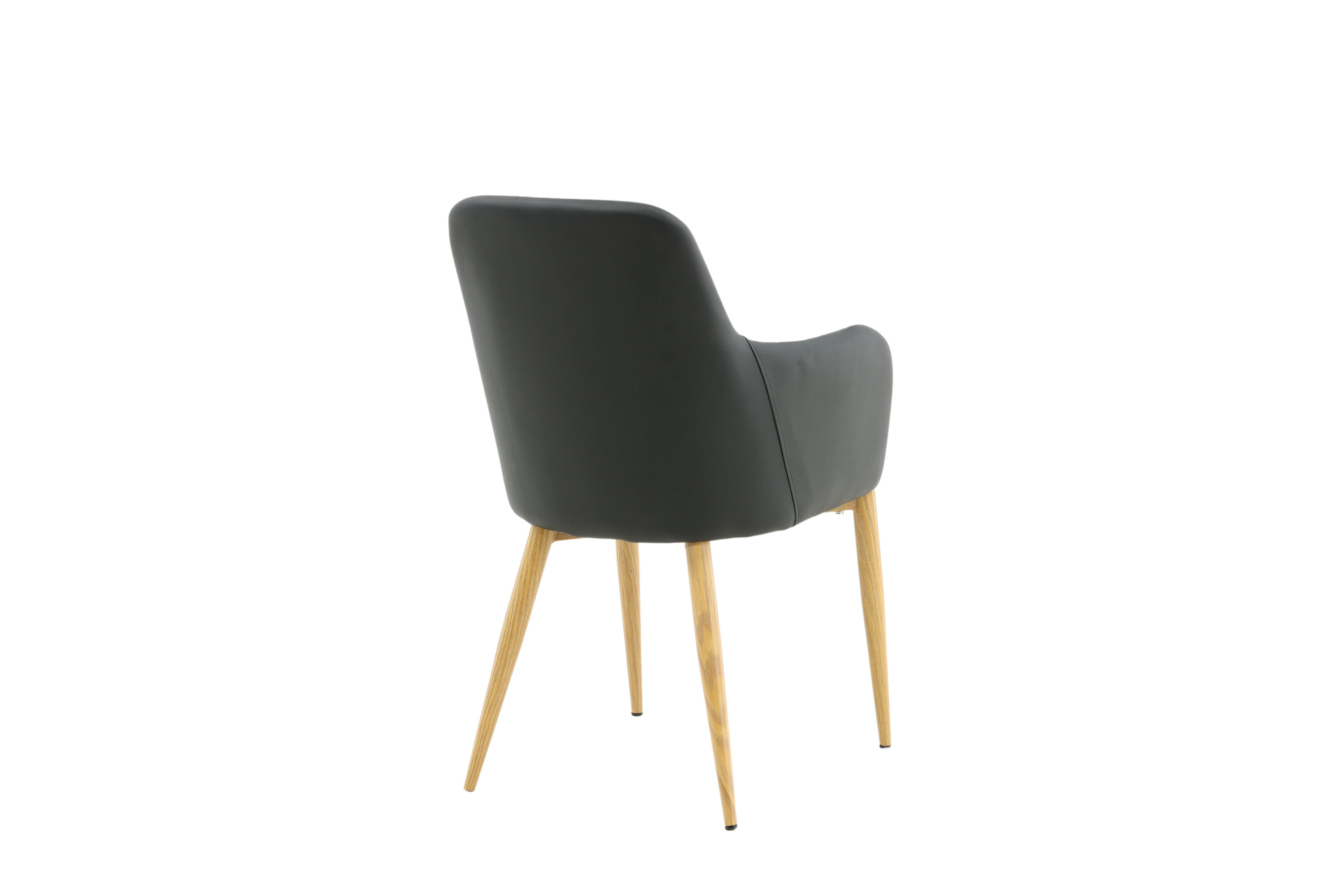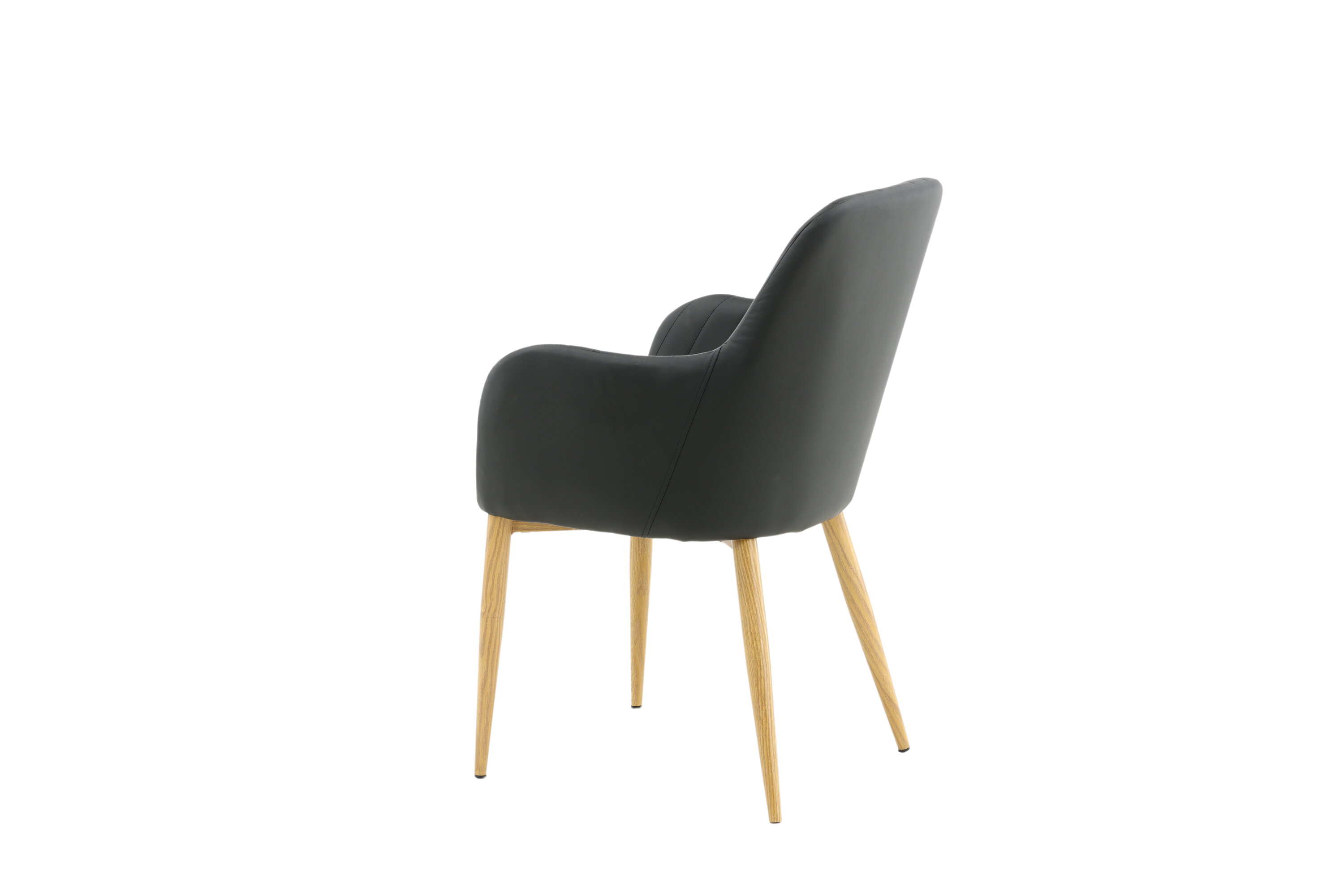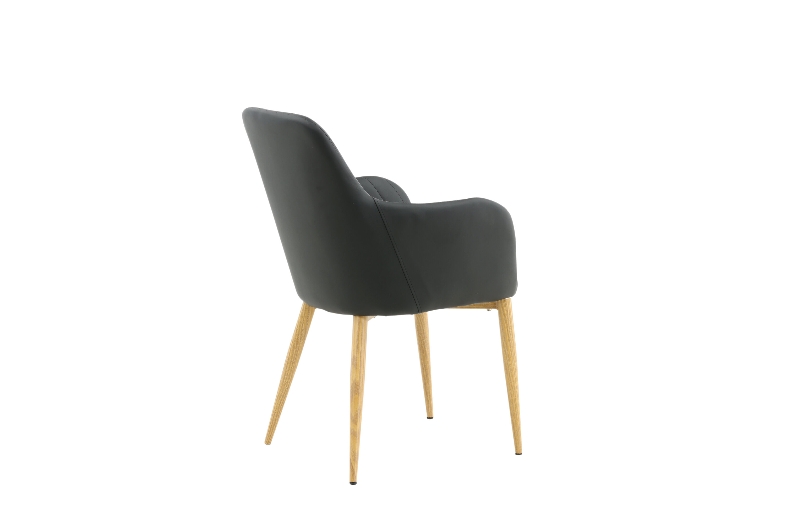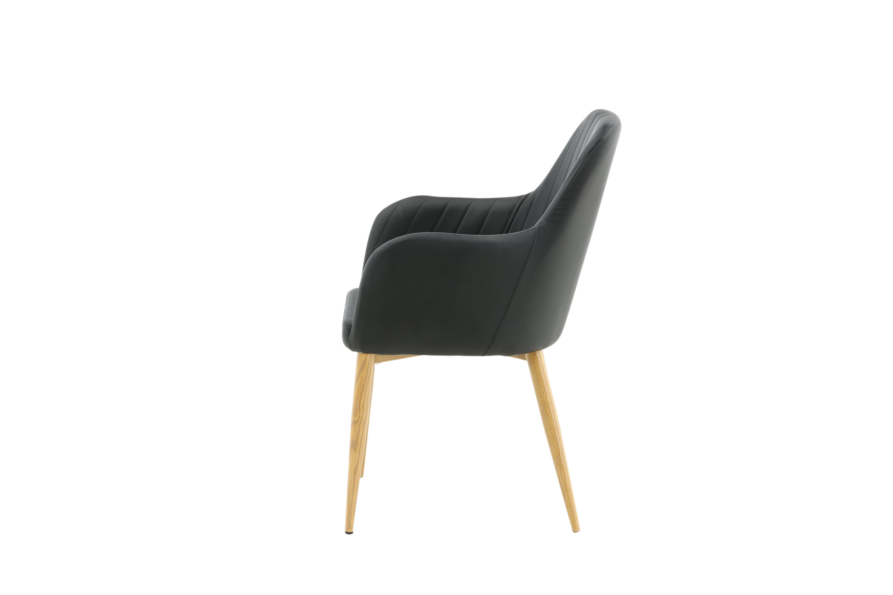 Onze heerlijke eetkamerstoel uit de Comfort-serie heeft een robuust, volledig gestoffeerd ontwerp met poten in eikenhout afgewerkt metaal. De rugleuning en zitting met geïntegreerde armleuningen zijn bekleed met zwart kunstleer voor comfortabel zitten. Decoratieve naden aan de binnenkant van de rugleuning en armleuningen voegen een stijlvol detail toe. Ga comfortabel zitten en nodig uit voor lekkere maaltijden van tevoren! Enige montage vereist.