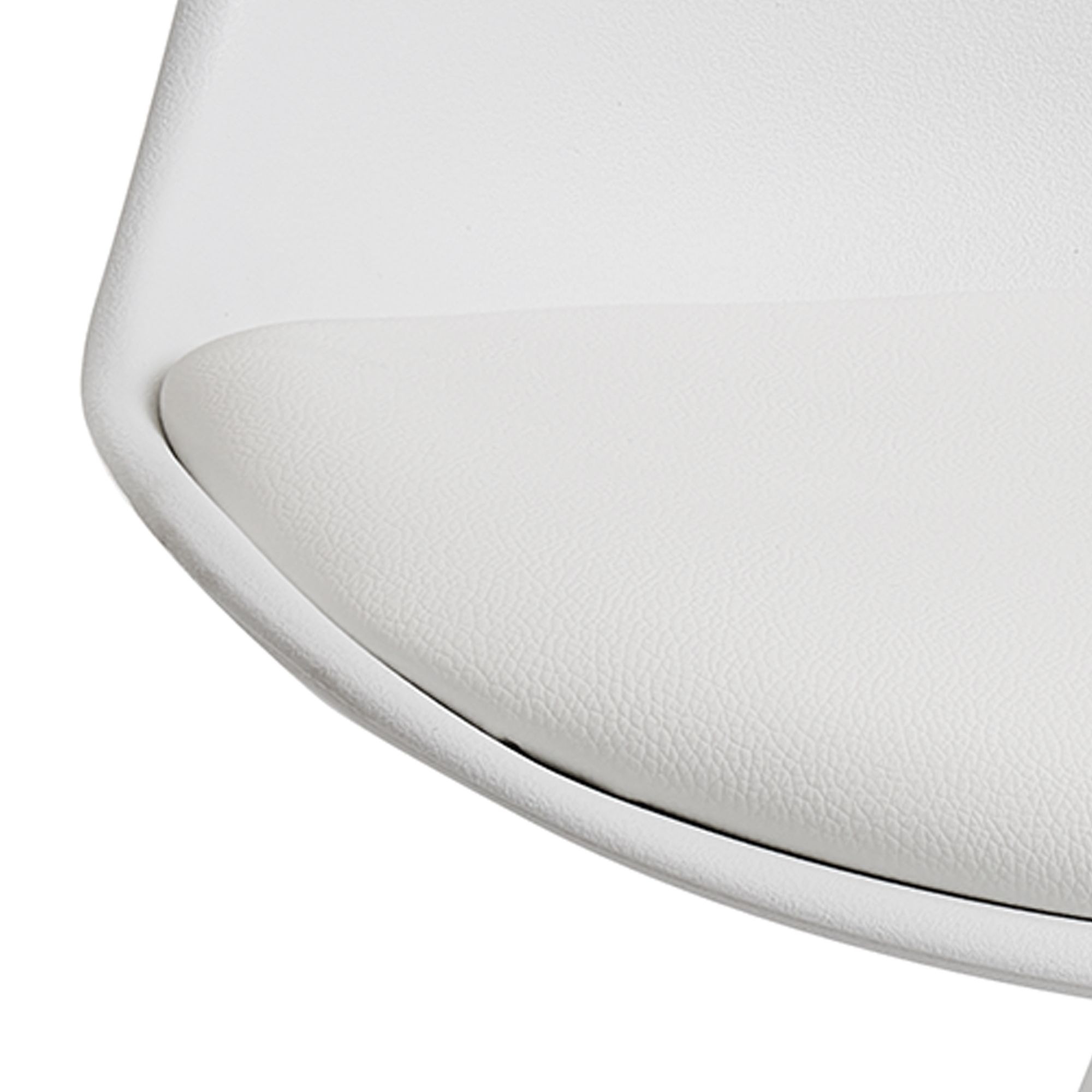 Geef uw eetkamer een stijlvolle Scandinavische uitstraling met deze set van 2 retro witte eetkamerstoelen. Modern design met hoogwaardige kunststof zitting bekleed met kunstleer voor comfort én duurzaamheid. Massief, wit gelakte Heveahouten poten zorgen voor stevige stabiliteit.