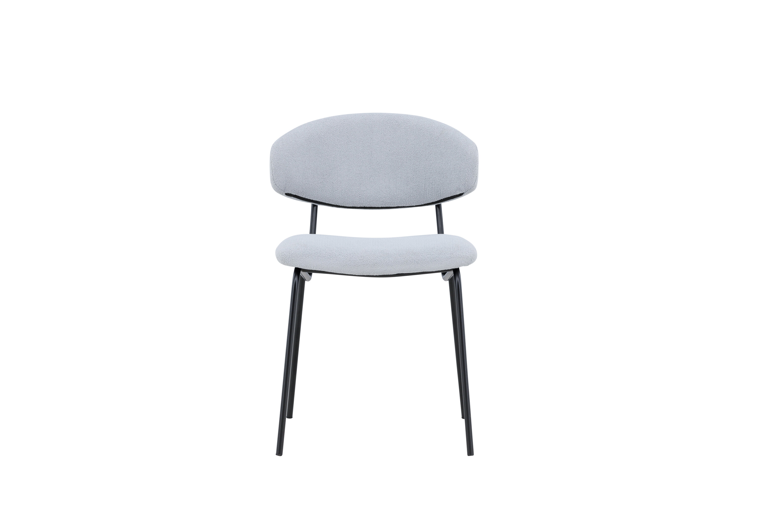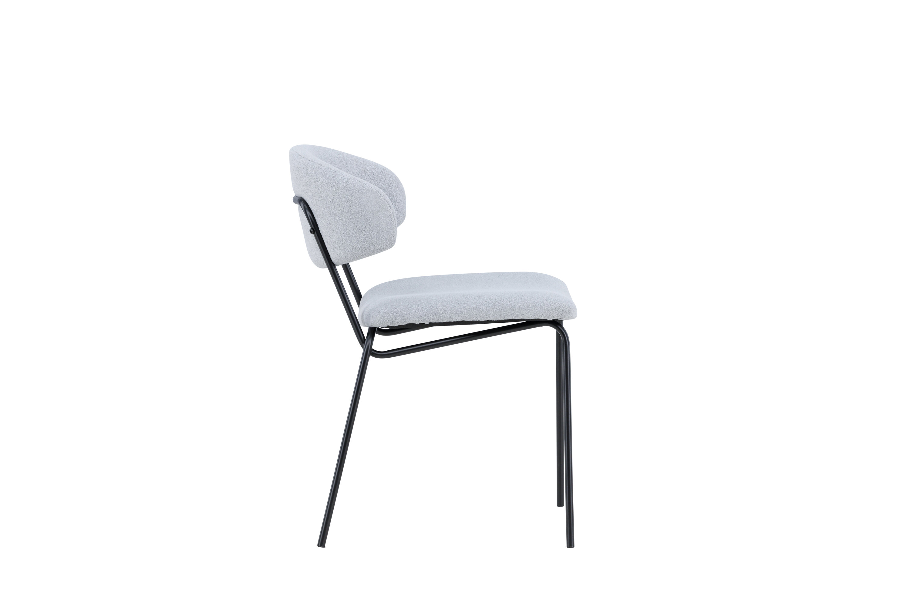 Ontdek Chico - de elegante stoel die de sfeer van je eetkamer naar een hoger niveau tilt. De zitting van de stoel is bekleed met blauwe bouclé en de poten zijn gemaakt van zwart staal, waardoor een indrukwekkend contrast ontstaat. Chico wordt geleverd in een handige verpakking van twee stoelen.