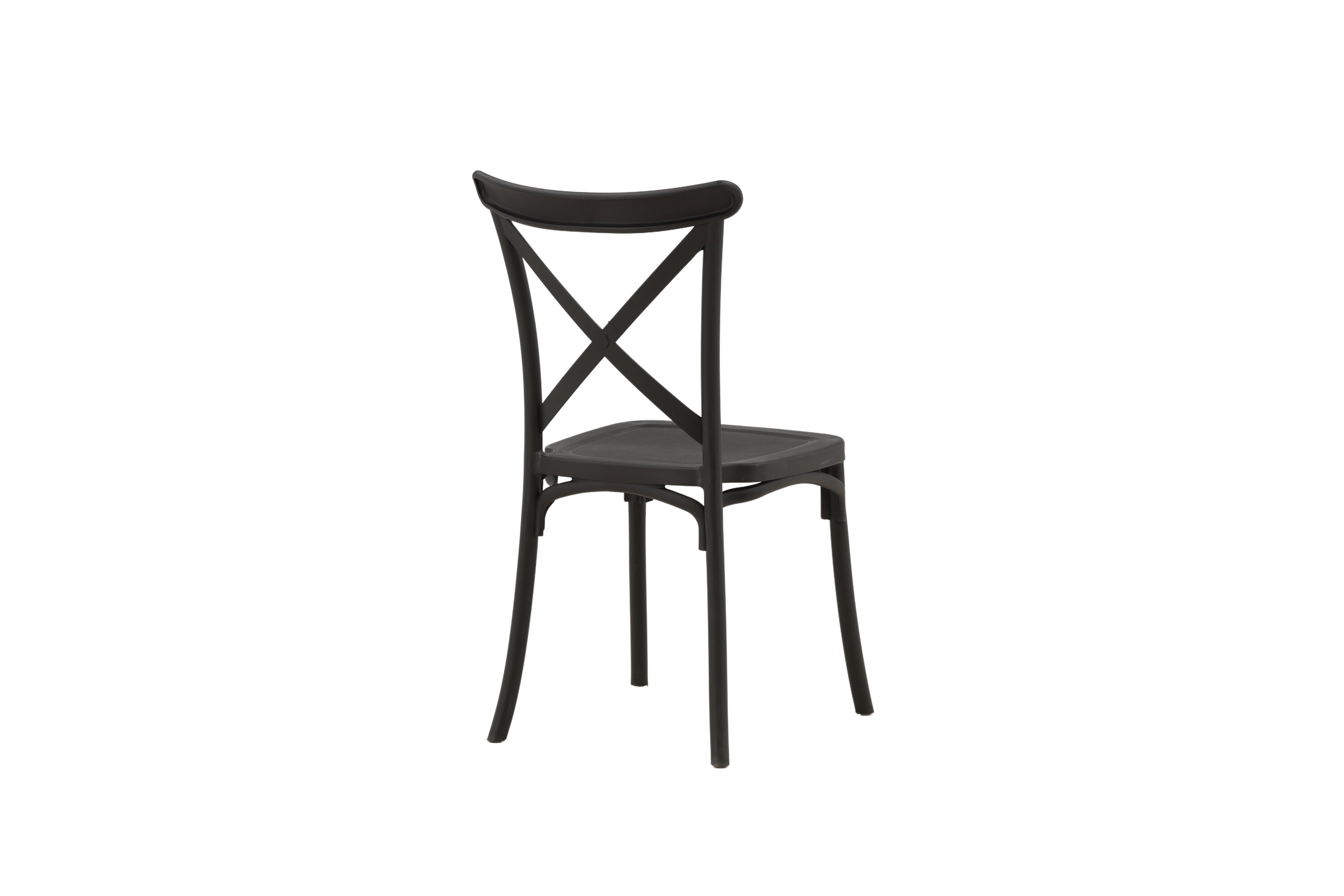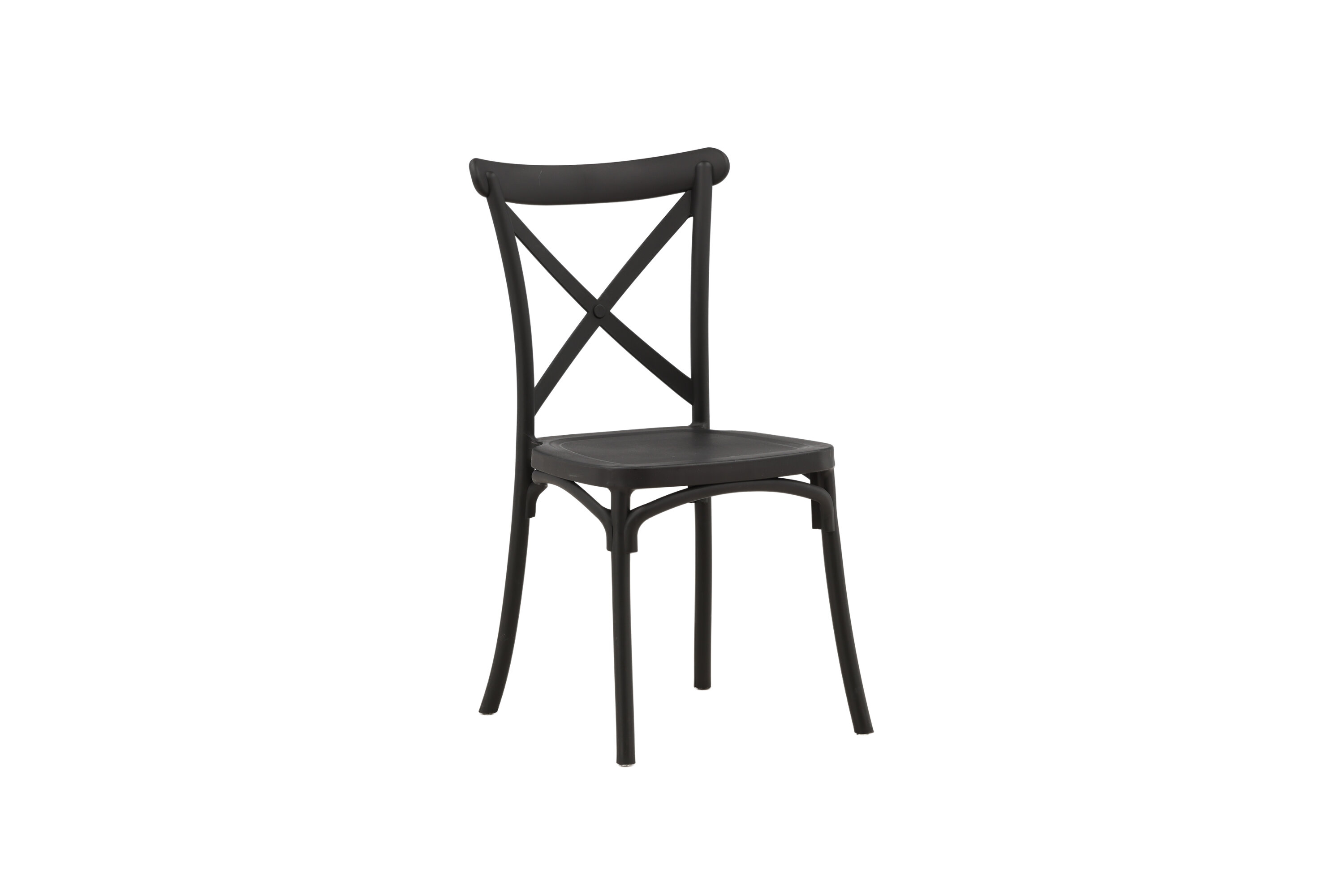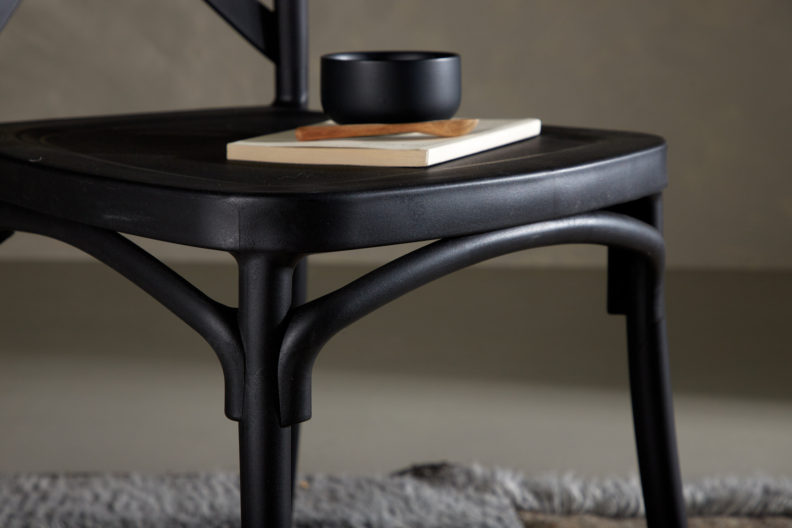 Verhoog het stijlniveau in het hart van je huis! Deze stoel uit de Crosett serie combineert klassiek design met moderne flair. De zitting is consequent gemaakt van het handige materiaal plastic en heeft een matzwarte kleur die de tand des tijds doorstaat. Combineer het rond een prachtige eettafel om een complete eetset te creëren om je dierbaren rond te verzamelen!
