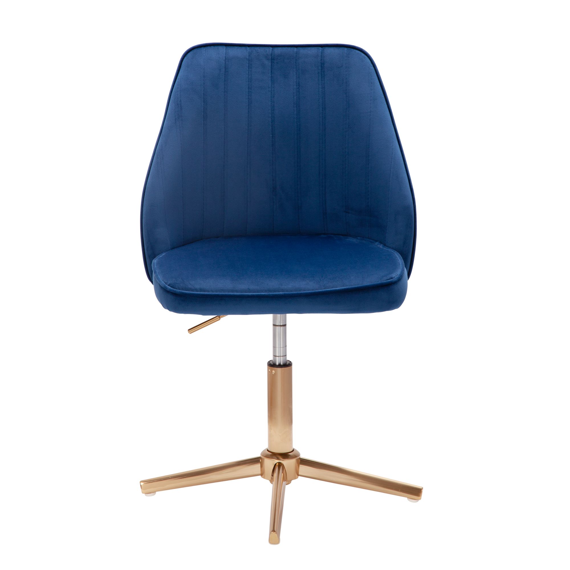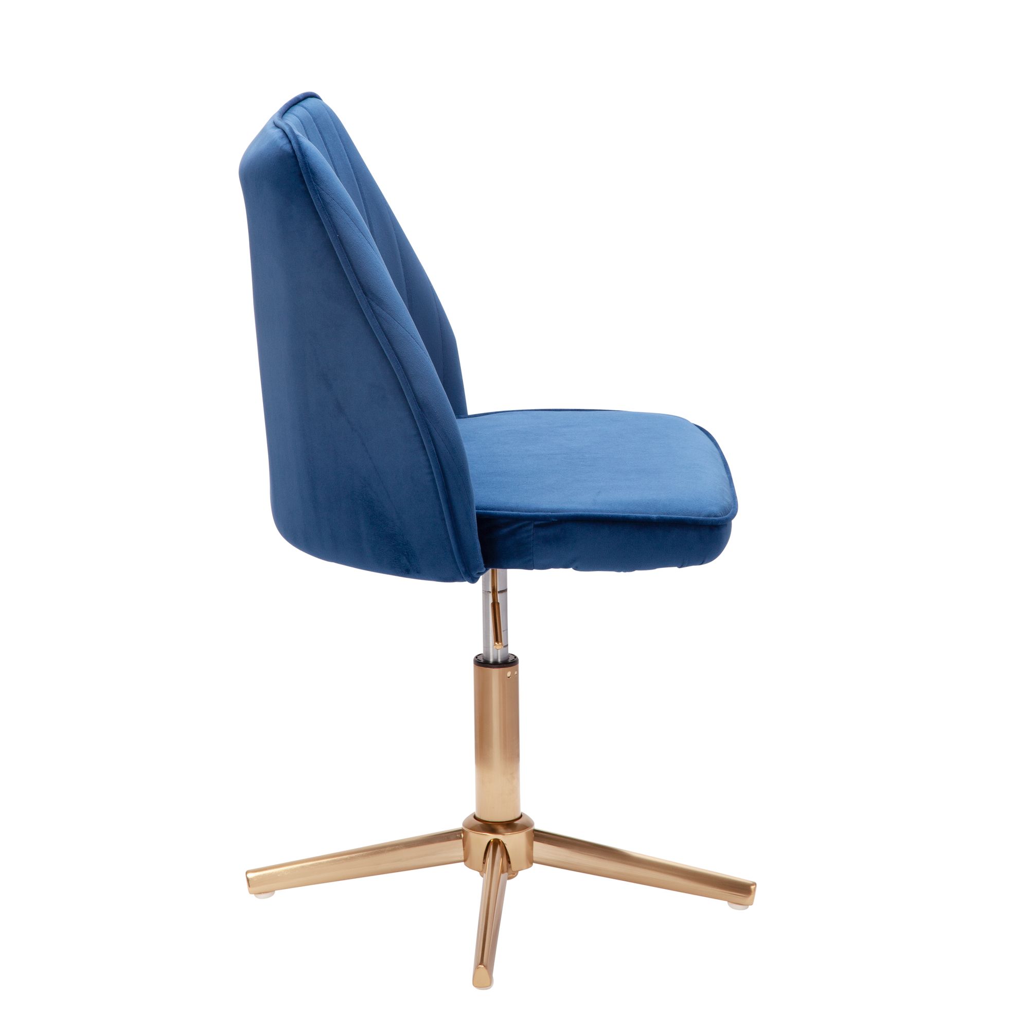 Donkerblauwe fluwelen bureaustoel | Goud metaal | Hoogte verstelbaar 80-100 cm